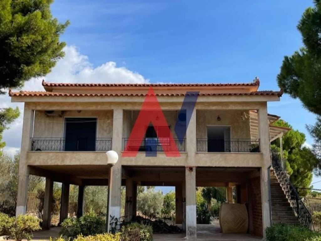 Eretria, Magoula: Detached house 230sqm built on a plot of 1400sqm with a large garden and 2 different entrances. On the ground floor is the pilot house with the warehouse and the boiler room. The first floor is 77sqm and with the verandas 110sqm, with 2 bedrooms with wooden wardrobes built-in, 1 bathroom with mezzanine, open-plan kitchen and living room, with a built-in kitchen and a fireplace in the living room. It has night electricity, a well, independent heating with a central installation. The beach is 200m away and the center of Eretria is 3 minutes away by car, where it has a super markets, restaurants of all tastes, cafes by the sea, pharmacies The ancient Theater and the Museum of Eretria are 4 minutes away by car Price €155,000 | Property Code: #MMM61182347