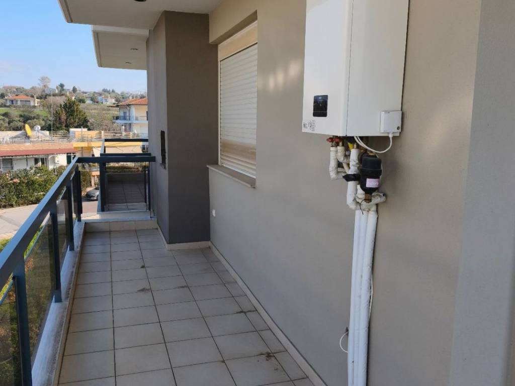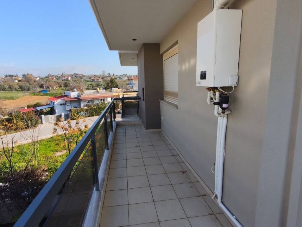 In Michaniona, in a prime location with direct access to the city center, we present a 2nd-floor apartment with a total area of 90 sq.m., offering stunning views of the sea and Mount Olympus. This high-quality building, constructed in 2022, includes 2 spacious bedrooms, an open-plan living room and kitchen, a bathroom, and a WC. It features a modern bathroom vanity with a mirror, a shower cabin, double-glazed windows, a security door, and an individual natural gas boiler. The balcony has a built-in BBQ, and the apartment also offers pre-installation for an alarm system and a solar water heater. The price includes an 8 sq.m. storage room in the basement (accessible by elevator) and a parking space. All rooms have comfortable balconies with excellent views, and the southeast orientation ensures abundant natural light. An excellent choice for families looking for a truly newly built home.