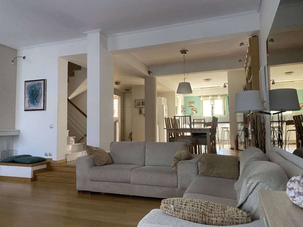 This charming property of total living space 233 sqm sitting on a 250 sqm plot is located in the heart of Miladeza in Vari. Entering this well maintained property we walk through a charming small garden moving towards the elevated ground floor where we find an open space living / dining room with fireplace and an open space kitchen. On the same floor there is a guest wc and a door which leads to the back yard. Moving on to the first floor we find three bright and spacious bedrooms one of which is master ensuite with walk in closet. Additionally there is one more bathroom serving the other two bedrooms. At the semi basement there is an amazing bright and spacious bedroom, a bathroom, extra storage rooms and a door with access to the back garden. A separate entrance leading to the indoor garage which offers one parking space is also at the semibasement and one more parking space at the ramp outdoors. Aditional feautures of the house include: an amazing roof top area overlooking the Varkiza bay, back yard for family gatherings and a possibility of pool construction, elevator, under floor heating with oil, aircondition units, great neighborhood, very close to transportation! Vari: Location and surroundings of this property Location: Vari is an up-and coming suburb in southern Athens, located just 22 kilometers away from the city centre. Unique features: Vari is a premium destination for summer vacations and is home to organized beach facilities, beach bars, restaurants, tavernas and watersports clubs. It still retains its neighbourhood feel and is ideal for raising families. Vari has a lively commercial centre and proximity to supermarkets, banks and boutiques. It also has a vibrant night life with some of the best-known summer clubs. Accessibility: Accessible by bus to the city centre and to Glyfada, the closest commercial hub and just a 20-minute drive away from the Athens International Airport. Investment potential: Like most areas on the Athens Riviera, property prices here will always offer a good return on investment.