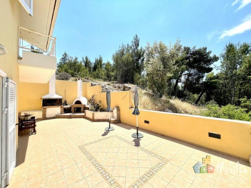 Beautiful family house of 330 sqm on 4 levels, in perfect condition, built on a plot of 508 sqm; it is the ideal option for a family who wishes to live in contact with nature. Indeed it is located on the edge of a pine forest, near international schools and major highways. It is located in absolute calm, 2.5 km from the shops of Pikermi, 10 minutes from the Macarthur shopping center and the Attica motorway, 20 minutes from the airport and 15 minutes from the beaches. You will appreciate its lawned garden, its paved courtyard equipped with a BBQ, its spacious and bright rooms, its numerous storage spaces and its view of the pine forest. The slightly sloping ground allows two levels of ground floor. The entrance to the house through the garden leads us to a large living room with fireplace, decorated with balconies, the open kitchen is equipped,and communicates with the BBQ area, a toilet and a storage room. On the first floor a living room serves 3 comfortable bedrooms including a master with walking closet and its ensuite bathroom, two children's bedrooms with mezzanines, there is also a second spacious bathroom. On the top floor, a large attic room can be used to install an office, play room, gym room or extra bedrooms. At the lowest level next to the garage, there is a large living room with an open kitchen and its fireplace, a bedroom and a shower room. Independent heating on each floor, boiler, double glazing, security door, automatic watering.