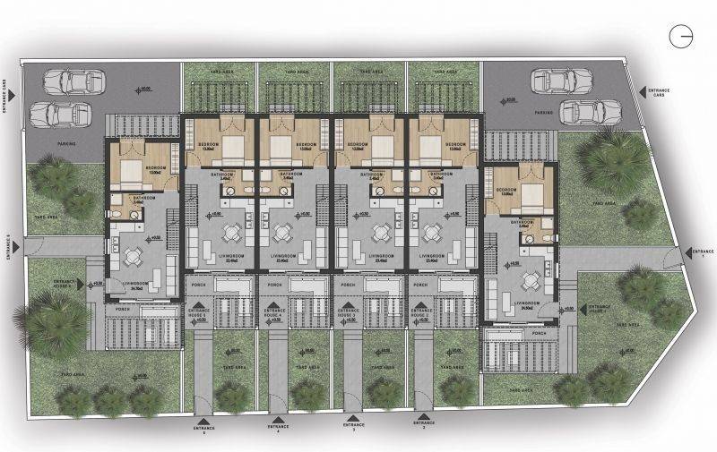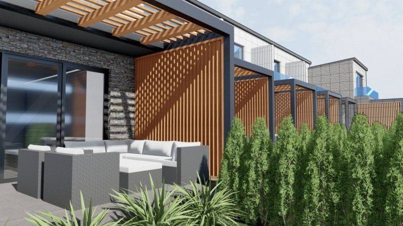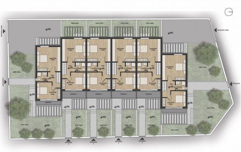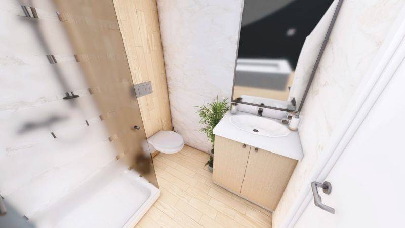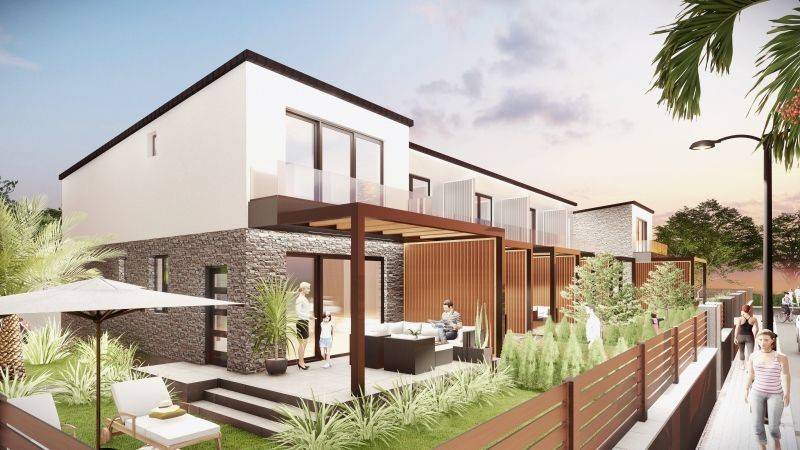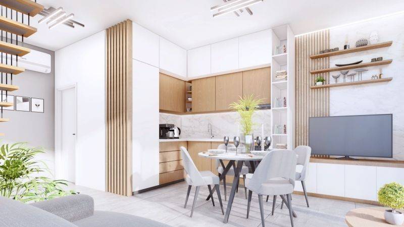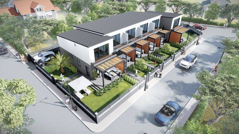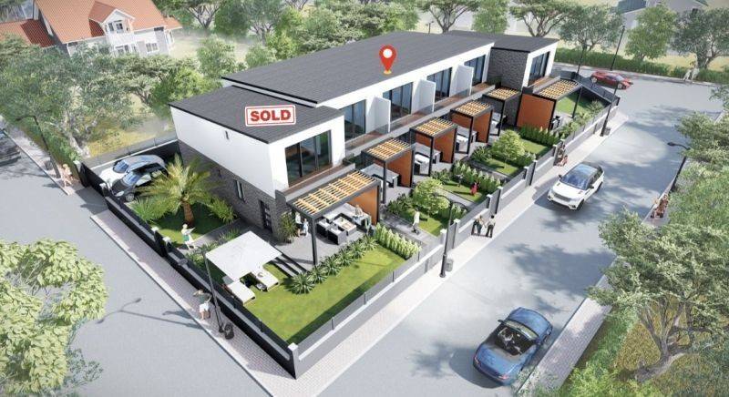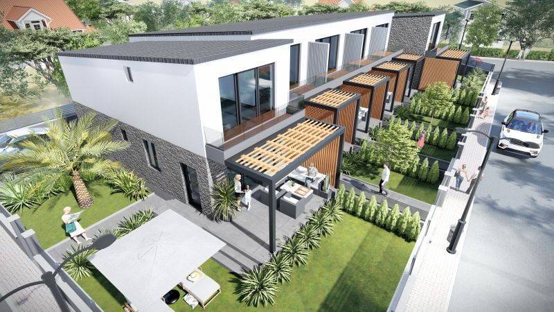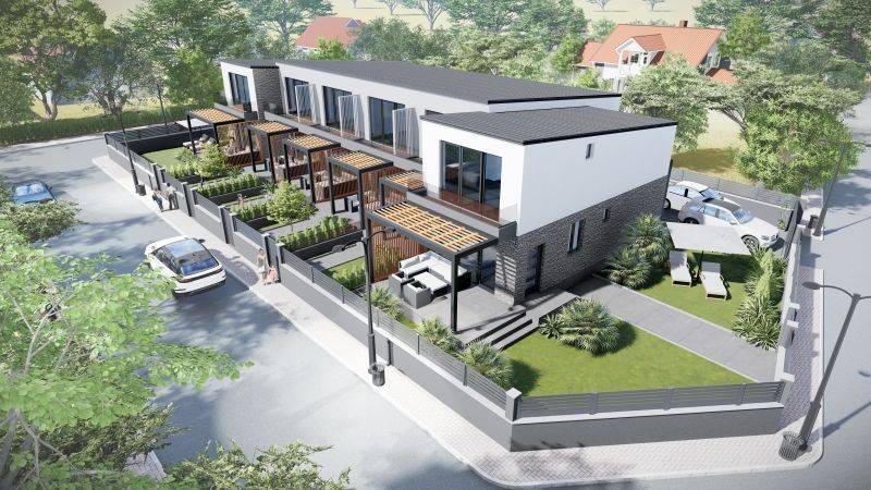 The property, K3, consists of two levels. The ground floor features a spacious open-plan living room with a kitchen, one bedroom, and a bathroom. The first floor includes two bedrooms and an additional bathroom. The maisonette comes with an exclusive-use plot of 103,26 sq.m., which includes two parking spaces and a beautifully landscaped outdoor area. It stands out for its modern design and the excellent quality of materials used. The property will be delivered fully completed, with a solar water heater, air conditioning units in all rooms, energy-efficient colored window frames, and decorative stone cladding. The final delivery date for the property is June 30, 2026.
