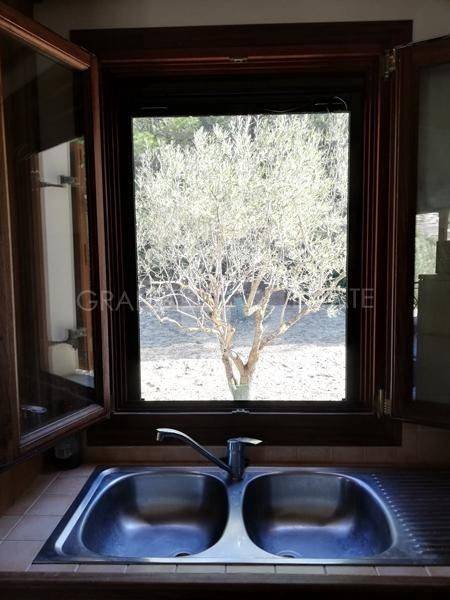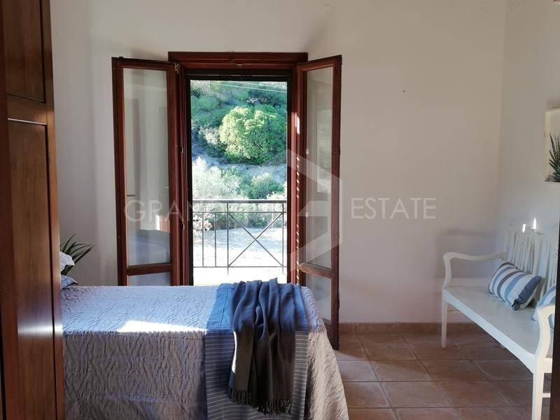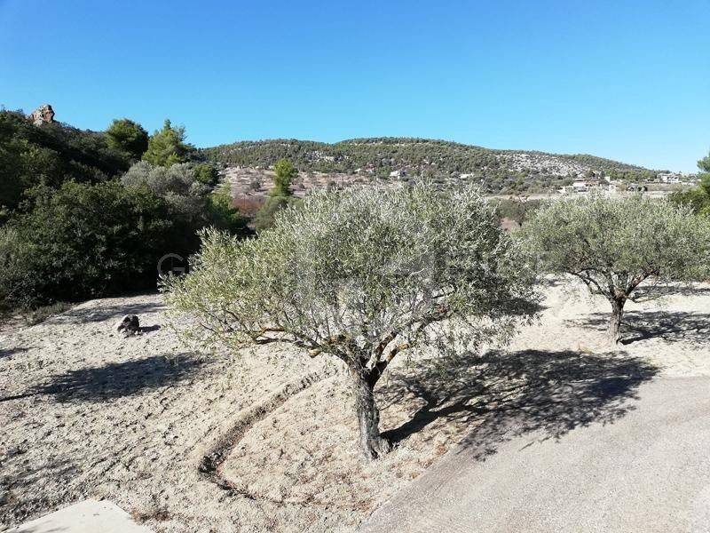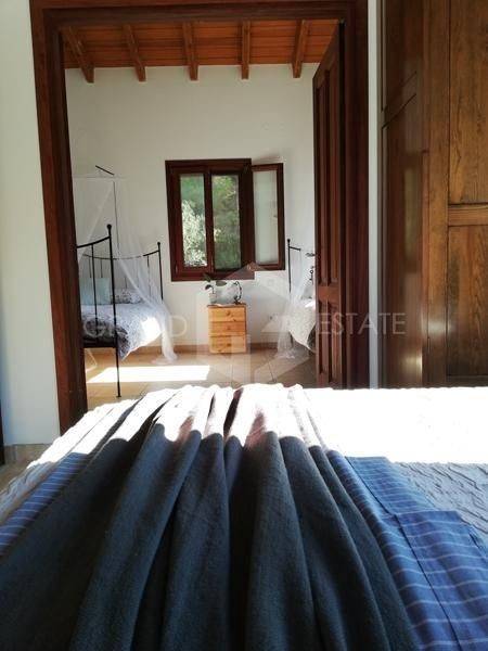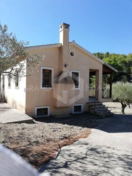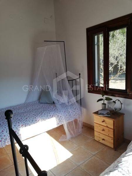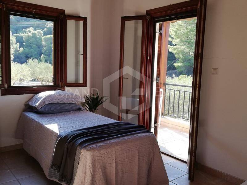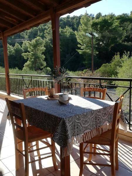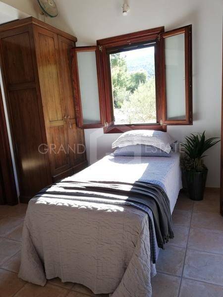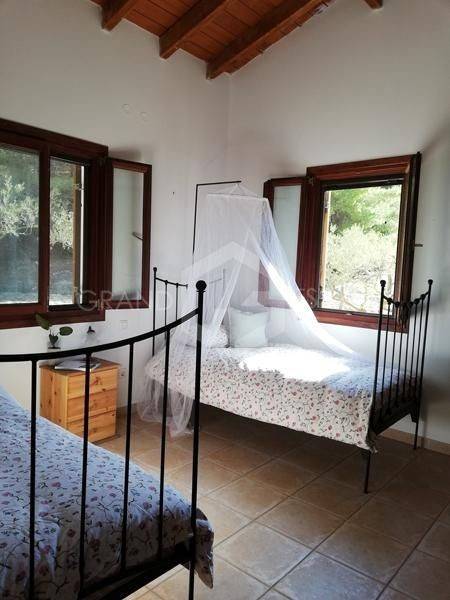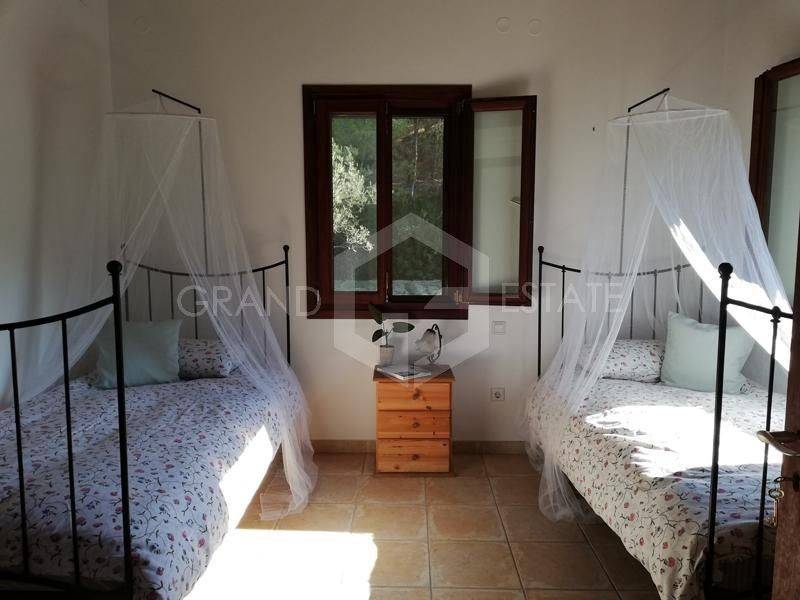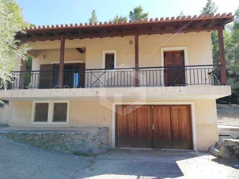 Egina, Alones - Detached House 130sqm plot 8955sqm, bedrooms 2, levels 2, semi-basement - upper floor, very good condition, year built 1997, energy class G, living room, hall, kitchen, 2 bathrooms, oil, parking open space, quiet, dual aspect apartment, luminous, corner, mountain view, frontage, storage space, fireplace, balconies, large balconies, balcony 15sqm, garden, wooden frames, double glazed windows, door screen, ceramic tiles floors, without common charges, alarm, playroom, pets allowed, within city plan, residential zone, south-eastern orientation, access from asphalt, investment property, close to sea (up to 3000m), close to port (up to 3000m), close to mountain (up to 100m).