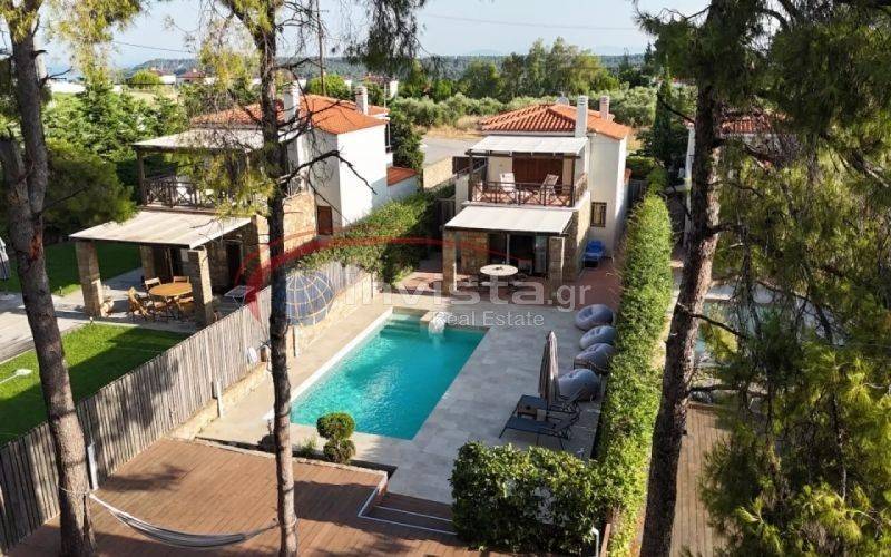 Property Code: 56914 - House FOR SALE in Kassandra Elani for € 450.000 . This 120.00 sq. m. furnished House consists of 2 levels and features 3 Bedrooms, an open-plan kitchen/living room, 2 bathrooms . The property also boasts Heating system: Individual - Electric, tiled floor, view of the Sea, Window frames: Aluminium, Security door, accessibility for people with disabilities, a storage unit 2 sq.m. sqm, garden, swimming pool, A/C, electrical appliances, awnings, insect screens, double-glazed windows, BBQ, open space, internal staircase. The building was constructed in 2010 . Building Energy Rating: C Distance from sea 200 meters, Distance from the city center: 10000 meters, Distance from nearest village: 3000 meters,