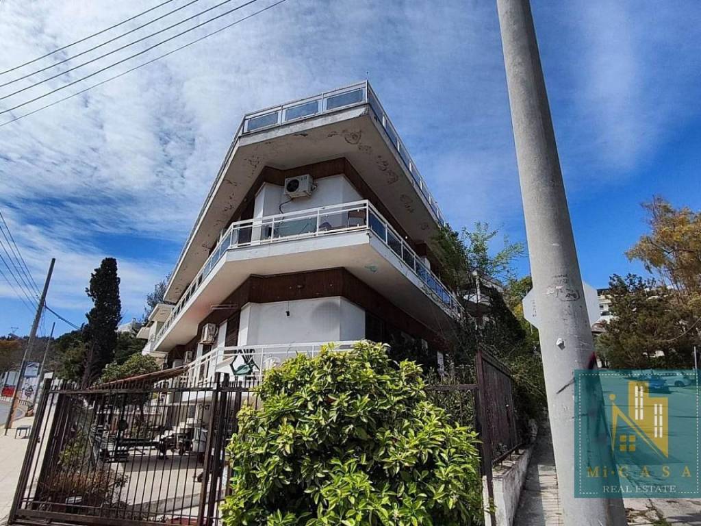 This rental building in Chaidari offers 450 sq.m of space across the ground floor, 1st, and 2nd levels. It features air-conditioning for heating, a forest view, and a corner, dual-aspect, frontal position with access from an asphalt road. The property includes a garden and veranda and is suitable for professional use. However, it needs repairs and has wooden window frames and mosaic flooring. The energy class is being issued, and it is characterized as bright.