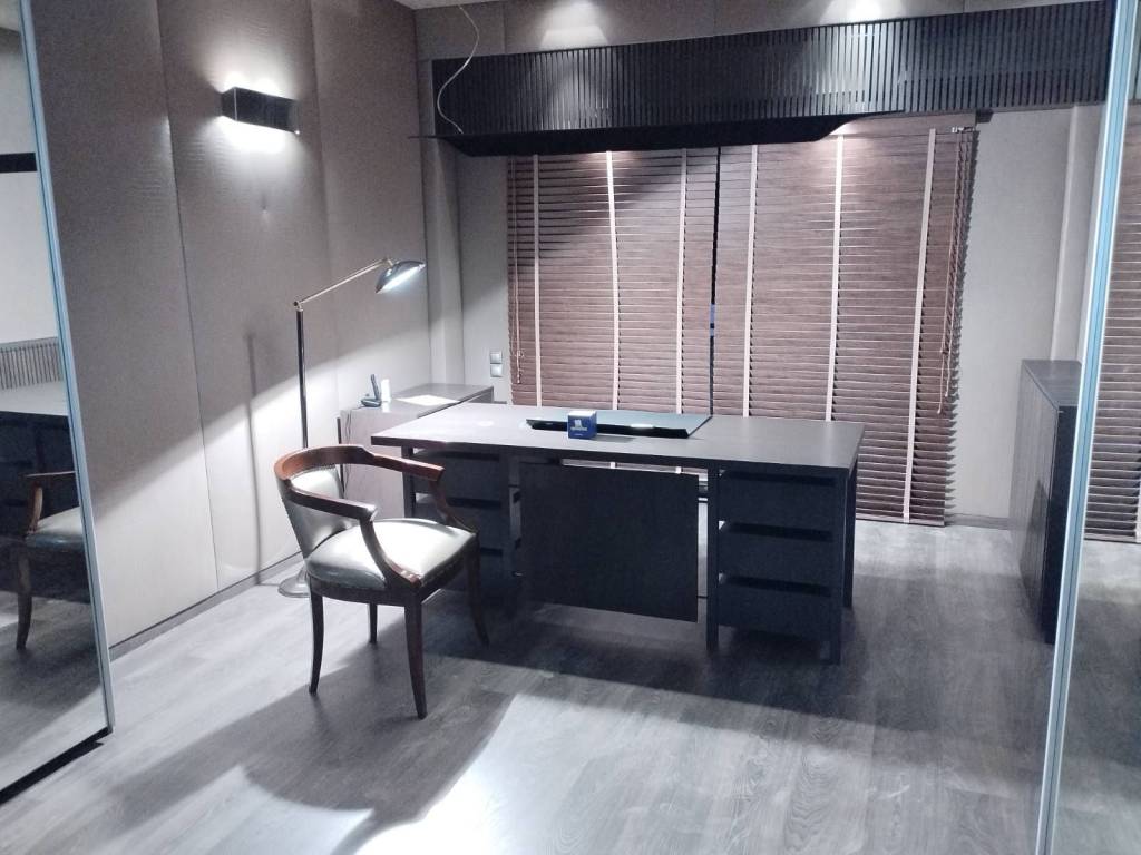 The office is located on the pedestrian street of Anastasiadis near Demokratia Square and opposite the historic building of the Bank of Greece (meeting place of the Agrinio Municipal Council). The interior has excellent quality leather lining on all walls, fully equipped with huge wardrobes, bookcases, desk, armchair and lamps. It also has a separate area with W.C., kitchenette and fridge.