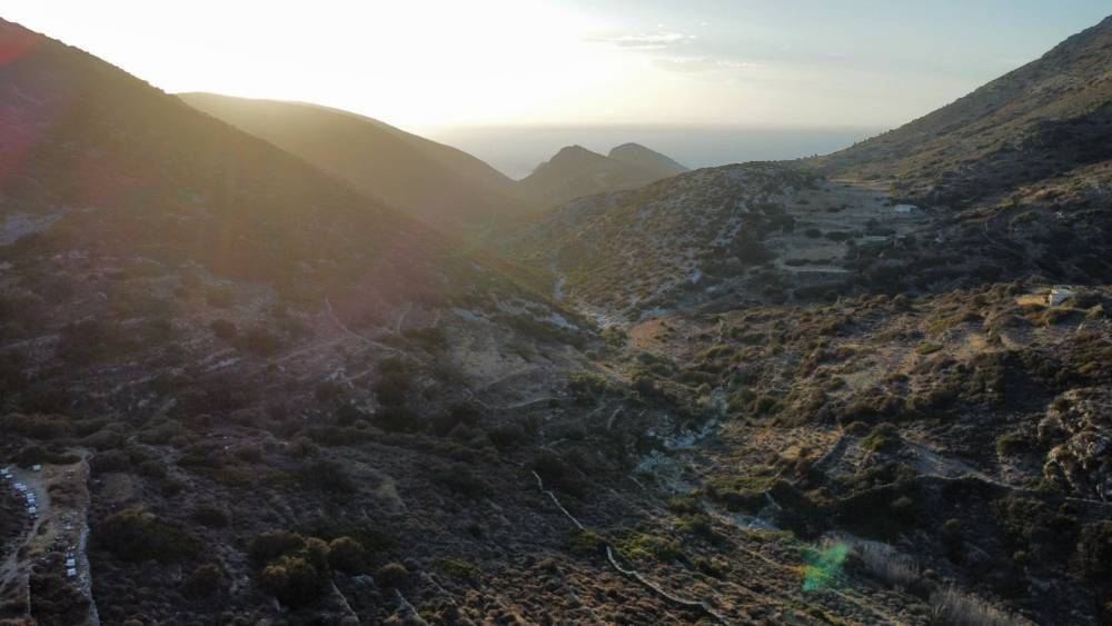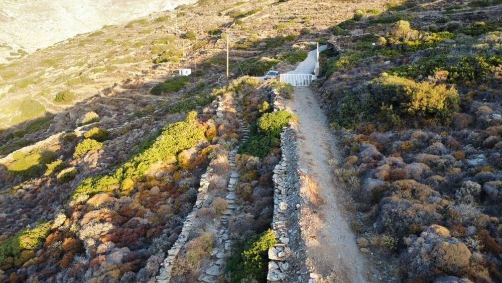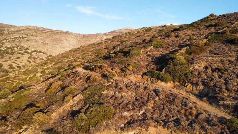 Syros, Papouri, Ano Meria: Plot for sale 20516 sq.m. facade with a building area of 186 sq.m., a height factor of 7.50m., remaining building area of 116 sq.m.. It contains a building of approximately 70 sq.m., it is proposed as an investment property with a sea view. .Price €190,000 | Property Code: #3898