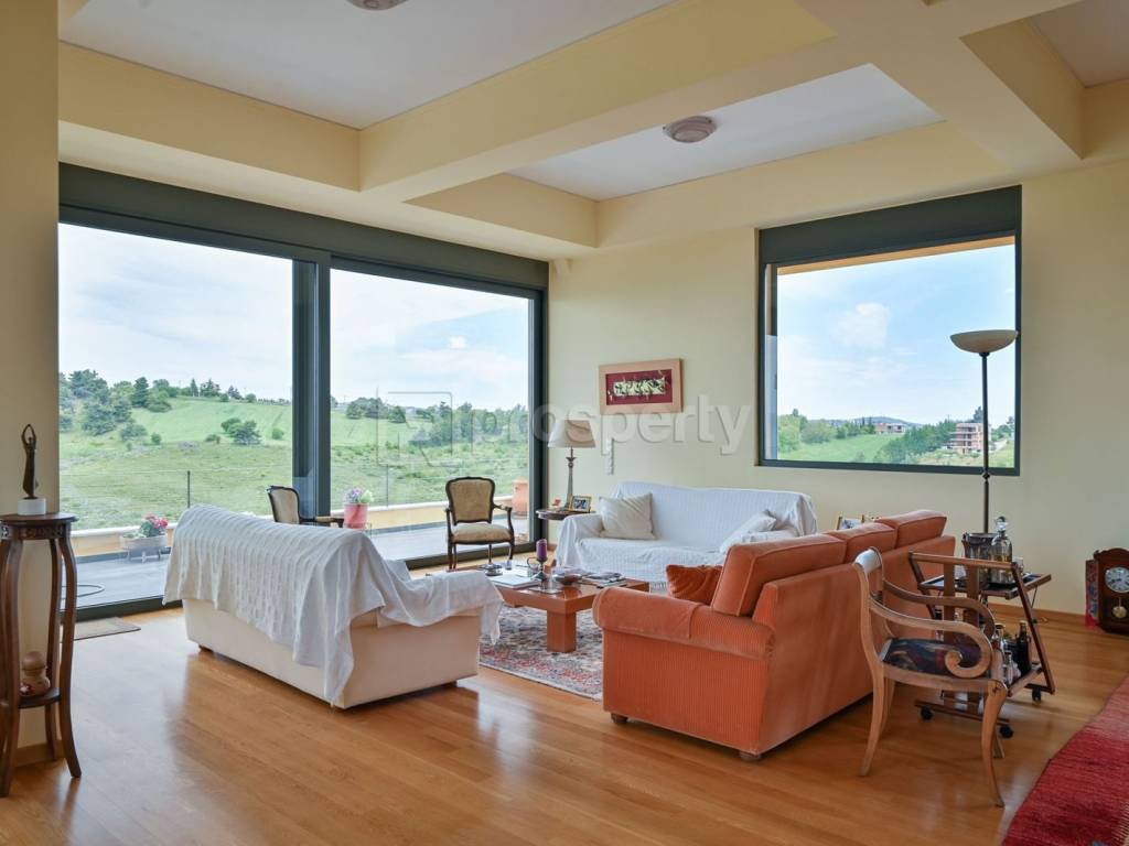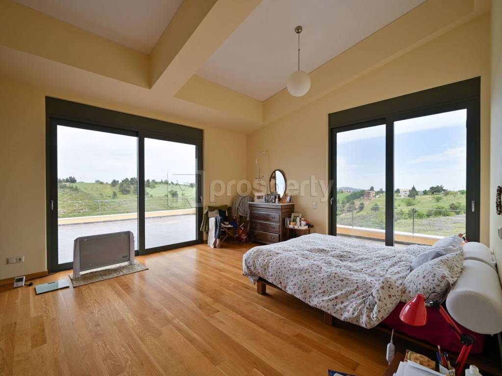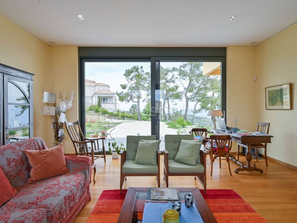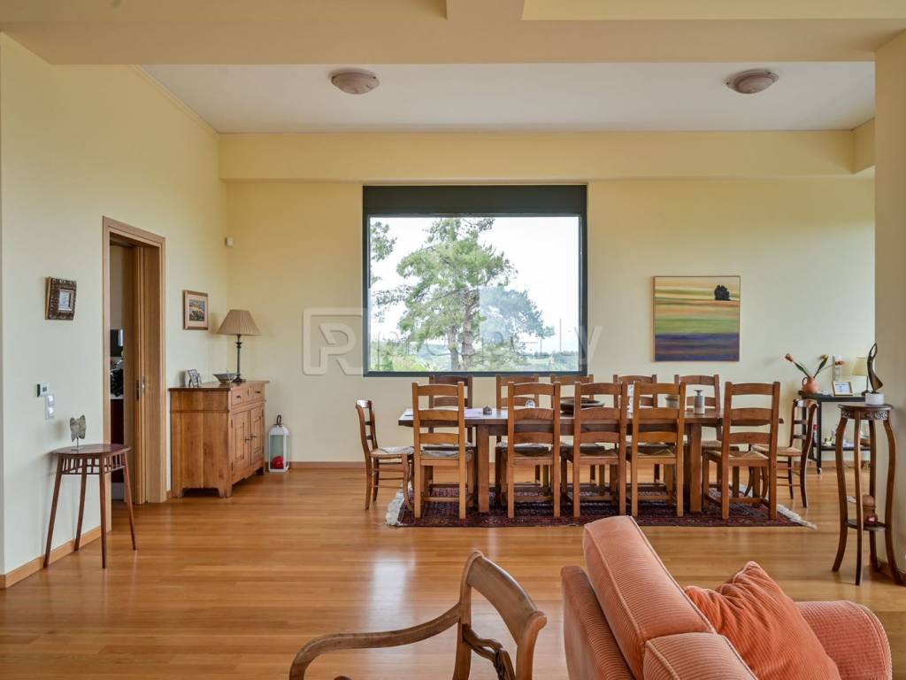 A very bright detached house with a stunning sea view, located in Kaphandriti. The 476 sqm property is situated on a sloping plot of 10,750 sqm and is developed on 3 levels. On the ground floor, there are spacious reception areas, two living rooms with an energy-efficient fireplace, a dining room with a beautiful sea view, a closed kitchen, and a bathroom. On the first floor, there is a comfortable master bedroom, a second bedroom with its own bathroom and wardrobe. There is also another room in a spacious attic with its own bathroom, which could be used as an office. On the lower level, with access to the garden due to the slope of the land, there are two bedrooms with en-suite bathrooms, auxiliary spaces for the house, and a parking space. The property offers large terraces with views of the greenery and the sea. Additionally, there is infrastructure for an elevator and the possibility of a swimming pool. A beautiful detached house in a quiet area, with easy access to the national road. https://marketplace.theprosperty.com/listings/2412 ☎️ 210 6812500