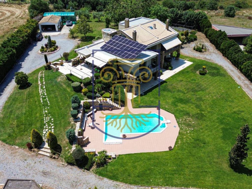 Luxurious 520 sq.m. Villa with Pool in Ano Peraia For Sale A truly unique property! This 520 sq.m. villa sits on a sprawling 3,000 sq.m. plot, offering breathtaking, unobstructed views of the Thermaic Gulf and Thessaloniki. This exquisitely designed and luxuriously constructed residence provides comfort, functionality, and a truly exceptional lifestyle. Key Features: 6 Bedrooms 2 Kitchens 2 Living Rooms with fireplaces 4 Bathrooms Large, luxurious pool with direct access from the villa Property Layout: Ground Floor: Bright kitchen with dining area and sitting area Living room with energy-efficient fireplace Dining room 1 Bedroom 1 Bathroom Mid-Level: Library with sitting area 2 Bedrooms 1 Bathroom Upper Floor: Guest room with private en-suite bathroom in pink marble Living room with fireplace Kitchen 1 Bedroom 1 Bathroom Storage room Additional Spaces: Laundry room and boiler room Multi-functional space (playroom, gym, or independent apartment) The property can be divided into two separate residences. Exterior: Large landscaped garden with ornamental plants, fruit trees, and olive trees Covered parking for 4 cars plus additional space BBQ area and comfortable verandas with panoramic views Sustainability: The house also features new, high-performance 12 kW photovoltaic panels, sufficient for the home's needs and for charging an electric vehicle. Please Note: Address Disclosure: The exact address mentioned in the advertisement is indicative of the property's vicinity and not the actual one.