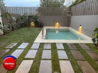 Vari-Varkiza, Miladeza, Maisonette For Sale, 110 sq.m., Property Status: Amazing, Floor: Ground floor, 2 Level(s), 2 Bedrooms 1 Kitchen(s), 2 Bathroom(s), Heating: Autonomous - Heat Pump, Building Year: 2024, Energy Certificate: A+, 1 parking(s), Floor type: Wooden floors, Type of door frames: Aluminum, Features: Elevator, Security door, Security alarm, CCTV, Storage room, Satellite Receiver, Internal Staircase, Double Glazed Windows, Window Screens, Balconies, For Investment, Luxury, Airy, Bright, Underfloor, AirConditioning, Solar water system, Boiler, Grass, Automatic Watering, Trees, Swimming pool, Back yard (Garden), New Construction, Price: 630.000€. Domus inc., email: gr@greekblue.gr