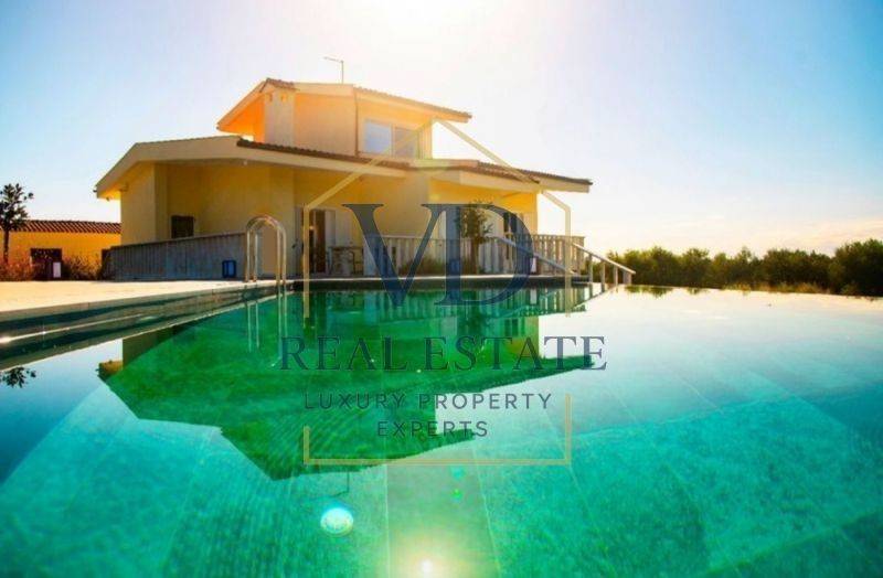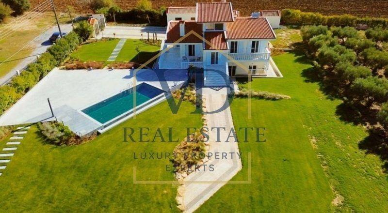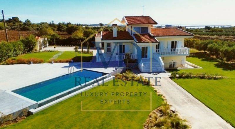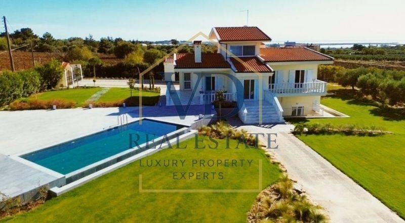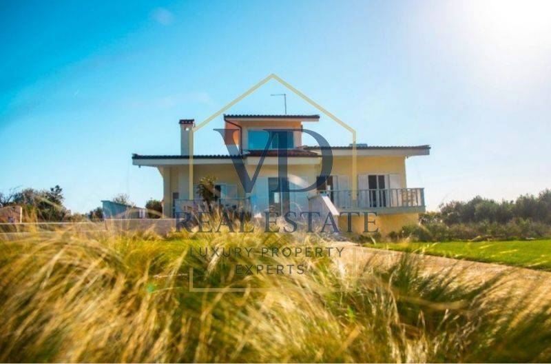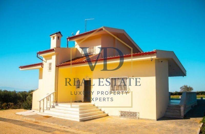 Property Code: 3-148 - Villa FOR SALE in Thermaikos Agia Triada for € 780.000 . This 314.00 sq. m. furnished Villa is on the Ground floor and features 5 Bedrooms, an open-plan kitchen/living room, 3 bathrooms . The property also boasts Heating system: Heat pump, marble floor, unobstructed view, Window frames: Aluminium, Armourplated door, accessibility for people with disabilities, a storage unit sqm, garden, swimming pool, electric car charging facilities, alarm system, electrical appliances, insect screens, playroom, satellite dish, off-peak electricity rates during night hours, open space, internal staircase, balconies: 3 sqm. The building was constructed in 1991 Plot area: 8 s.q. . Building Energy Rating: F Distance from sea 160 meters, Distance from the city center: 35 meters,
