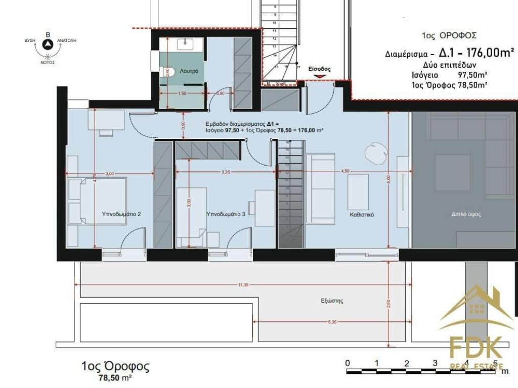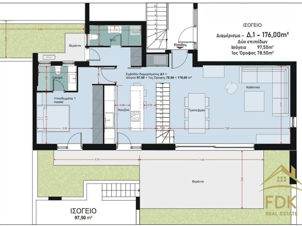 Maisonette for Sale in Alimos 176 sq m Energy Class A+ Exclusive use of Garden Ground Floor 1st Floor Newly Built We present an under construction, high-end maisonette of 176 sq m, energy class A+, which redefines the data in the property market in the Southern Suburbs. Architecture & Space Layout The maisonette extends over two levels (Ground floor & 1st floor) with an internal loft, offering absolute functionality: Ground floor (97.50 sq m): Impressive living room, dining room and open-plan kitchen of high aesthetics. Includes 1 Master bedroom, guest WC and direct access to the private garden of 150 sq m. 1st Floor (78.50 sq m): 2 spacious bedrooms, full bathroom and additional WC. Privacy: The property has two independent entrances with security doors, offering flexibility in the use of the levels. Green Energy & Sustainability (Energy Class A+) In an era when energy costs determine the value of an apartment, this construction pioneers: Net Metering: Installation of photovoltaics to cover heating costs. Heating Autonomy: Mitsubishi heat pump with underfloor heating. VRV Air Conditioning: Full coverage of all spaces through the heat pump. Thermal facade: 13 cm thick external shielding for zero losses. Energy Frames: Aluminum frames with thermal break, double glazing, screens and electric roller shutters for top thermal and acoustic insulation. Smart Home & Cutting-Edge Technology The property is fully equipped with smart automation for maximum comfort: Smart Home system (unified roller shutter closing, lighting scenarios, surveillance cameras). Electric car charging point in the private parking space. Water filtration system and fire detection network in each area. Pre-installed alarm and 2 parking spaces with basement storage. Location & Benefits The location is the “key” to a successful investment: 10 minutes walk from Alimos Metro station. Within walking distance of schools and sports facilities. Quality File: Upon delivery, you receive a complete technical file of the materials and construction. Contact & Information Invest in the quality of life you deserve. For an appointment, a visit to the construction site or further information, contact FDK Real Estate. Contact numbers: 2111 994725, 6980 003668 (Note: The property address is indicative)