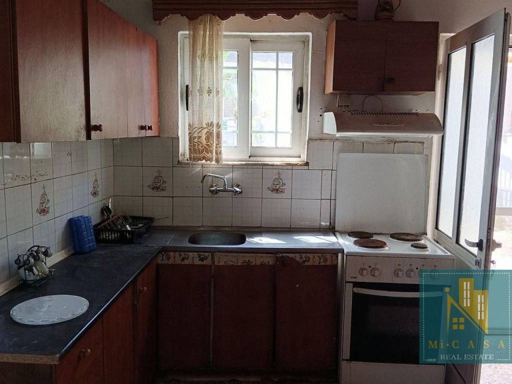 House for sale in Foloi, 105 sq.m, built in 1950, 3 rooms, Ground Floor. Available now with outdoor parking. Features mosaic floors, wooden window frames, and is currently being issued an energy class. Zoned for residential use with a dual-aspect, frontal position and access from asphalt road. Includes bathroom, storeroom, and veranda. Bright and pet-friendly. Property ID: 607.