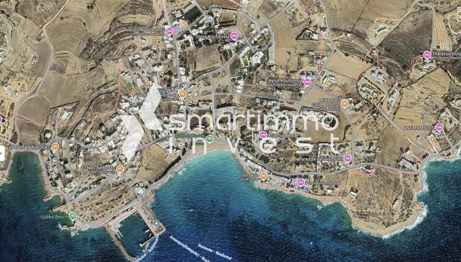 In the enchanting Chora of Koufonisia, this unique plot of land of 1034 sq.m. is offered for sale, ideal for investment or private constructions. The plot is corner, sloping, with a building factor of 0.4, providing the possibility of developing luxurious constructions. It offers unobstructed sea views, is located within the plan and belongs to the residential zone. It is seaside, with a south orientation, offering a sunny and bright atmosphere throughout the day. It has all the necessary infrastructure, such as access to lighting and water networks, while access is easy via an asphalt road. Its location and characteristics make it perfect, buildable and an excellent choice for investment activities.