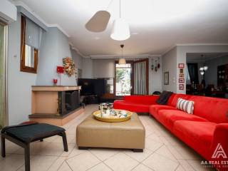 THERMAIKOS- GROUND FLOOR APARTMENT FOR RENT Charming, Independent, Airy, Bright, in a dream villa ideal for families or groups, capable of accommodating up to 5 people. This is an independent, comfortable space, 160 sq m. in a wonderful 2,000 sq m garden. It has 2 bedrooms, 2 living rooms, 2 dining rooms, 2 bathrooms, and a fully equipped kitchen with all electrical appliances and cooking utensils). The bedrooms have two double beds, while there is also a raised floor mattress suitable for one more person. The master bedroom has air conditioning while the smaller bedroom has a ceiling fan. The living room area has a fireplace, air conditioning and a TV. The large bathroom has a corner bathtub and wc while there is a second bathroom with only wc. Comfortable parking with electric entrance door to the garden of the residence, which is overgrown with beautiful trees and other plants, while there is a rock garden with a fountain, a fish pond and a gazebo with an outdoor dining area and a barbeque. Enjoy moments of peace and coolness in the garden while enjoying nature. You can enjoy the nearby beaches with beach bars, cafes and restaurants, 5 minutes away, while in 30 minutes you can reach the nearby beaches of Halkidiki. It is 14 kilometers from the airport and 25 kilometers from the center of Thessaloniki. The Regency Casino and the Inter-Balkan Hospital are 15 km away, while the Mediteranean Cosmos shopping center is 20 km away. An ideal choice for holidays but also for photographing special occasions such as weddings, engagements, etc. Available for a daily fee of 120 euros. . open parking spaces 0, painted, available for daily rent, type of glass duble, land surface 2000, energy class Δ, build in BBQ, inside settlement, country house, furnished, pets allowed, zone residential, garden, air conditioning, daily rent cost 120, frames synthetic, equiped, floor apartment, luxury home, security door, insect screen, touristic leasing, flooring type tile, garden type common use garden, bright