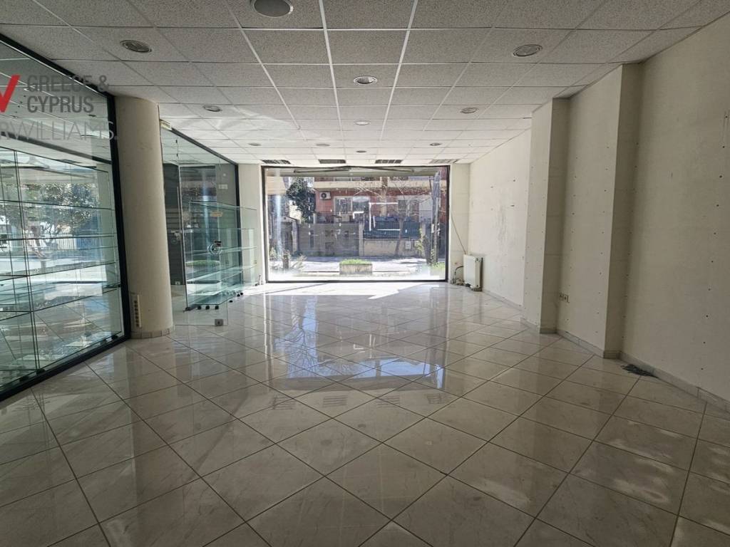 FOR RENT shop on a main road in Perea, with easy access and high visibility, ideal for various uses, such as a tutoring center, Pilates studio, hair salon, as well as for health-related businesses (without a chimney). The shop consists of two independent ground floor sections, with a total area of 112.48 sq m, divided into a left (56.61 sq m) and right (55.87 sq m) space. The height is approximately 2.80-3.00 m, with a false ceiling. Upon agreement, with an additional charge, additional basement space is available, approximately 65 sq m.