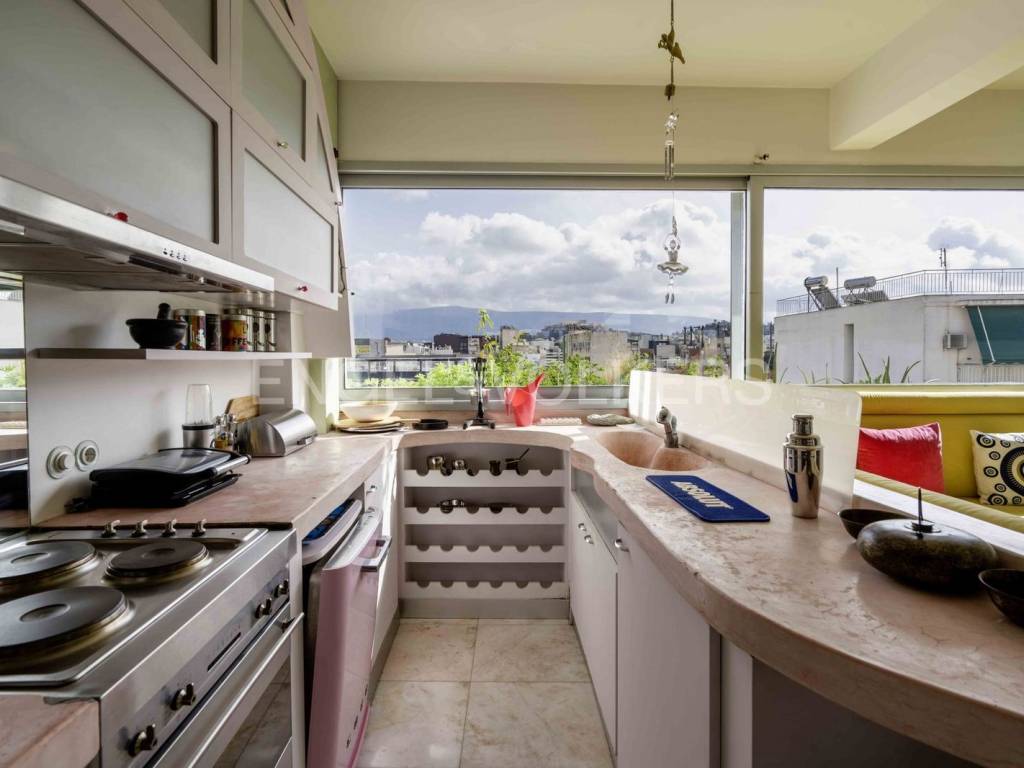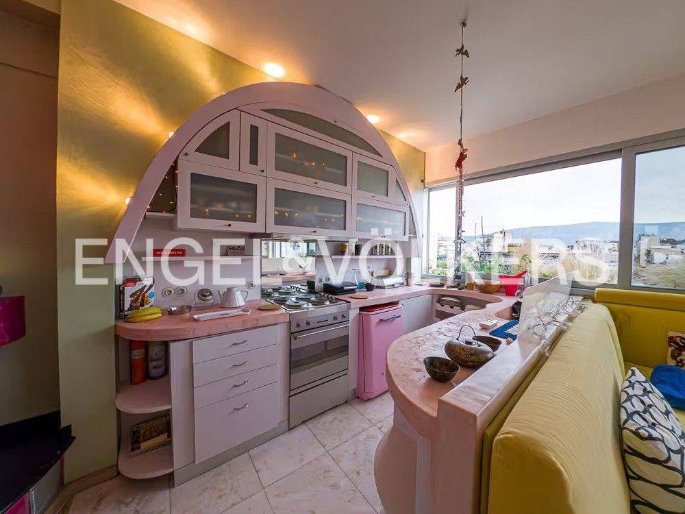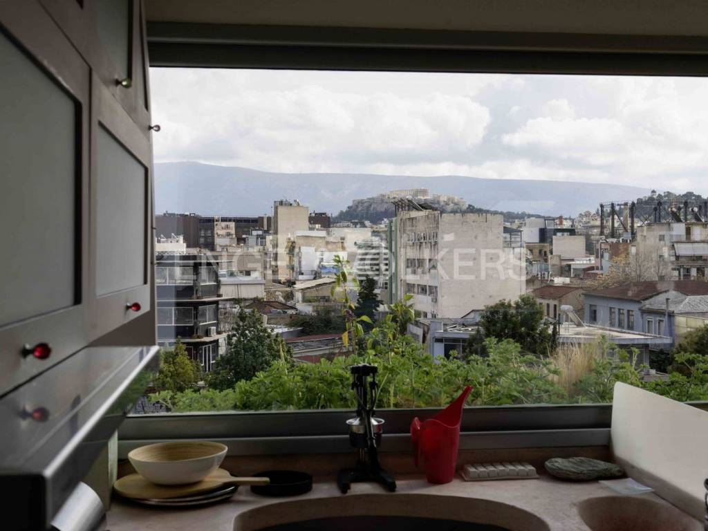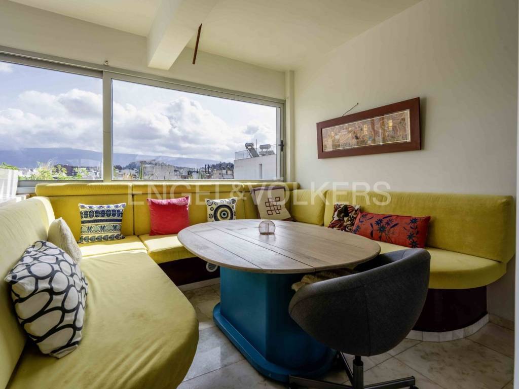 Engel & Völkers presents a beautifully furnished, fourth-floor loft apartment featuring a stunning view of the Acropolis and a charming open landscape of Athens. This apartment has been completely renovated. The surface living area is 106 sq.m. The interior layout consists of a spacious open area with one single space: the living room, the kitchen and the bedroom, and a bathroom. Key features of the property include: - Fully furnished with all necessary electrical appliances. - Exceptionally bright and airy. - Wooden parquet and tiled flooring. -Electric heating and cooling with air condition units and a solar water heater. - Double-glazed electrical aluminum windows. -An energy-efficient fireplace and a jacuzzi next to the bedroom. - Ample storage spaces, including built-in closets and a security door. - The building is equipped with an elevator and a camera installation. The flat has low monthly utilities. Votanikos is an upcoming neighborhood of Athens and one of the most authentic around the Athens city center. The apartment is next to the Kerameikos metro station (5 minutes or 400 meters by foot), and the Agricultural University of Athens is nearby (7 minutes or 550 meters by foot). Votanikos provides an excellent base for exploring Athens's sights in-depth and is close to lively surroundings such as Kerameikos and Gazi. Furthermore, Plaka and Psyri are located just one stop from the Metro. But, although all of the above areas have generally not escaped the touristic, Votanikos is entirely different. Despite being right next to those crowded and sometimes noisy surroundings, it provides peacefulness and many entertainment options with many beautiful restaurants and cafes while strolling among industrial buildings and stores. Votanikos is a highly developed area full of eccentric creativity. Accessibility: The metro and bus services are well connected to the rest of Athens. The Metro can take you to the airport in about 45 minutes, and in 20 minutes to Piraeus.