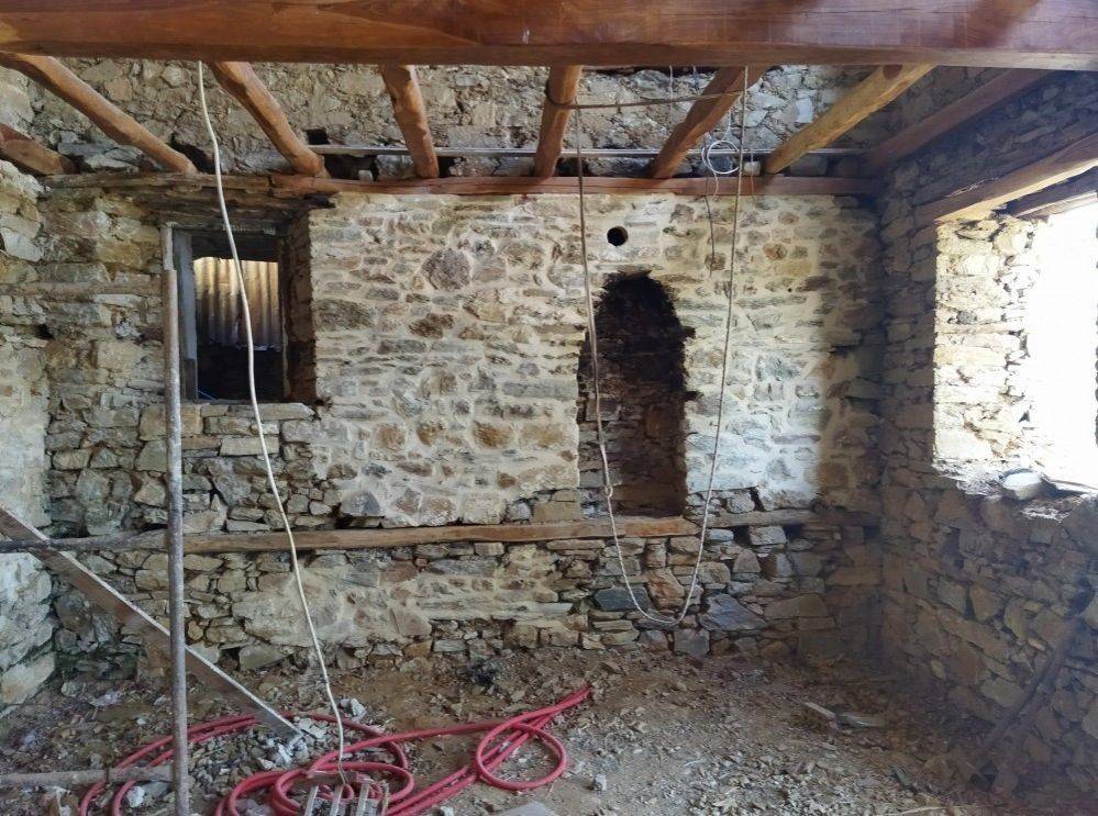 The whole property is under renovation from 2018. Specifically, the old roof has been replaced by a new visible roof, made of excellent quality wood. In addition, the structural joint -externally of the masonry- has been fulfilled.