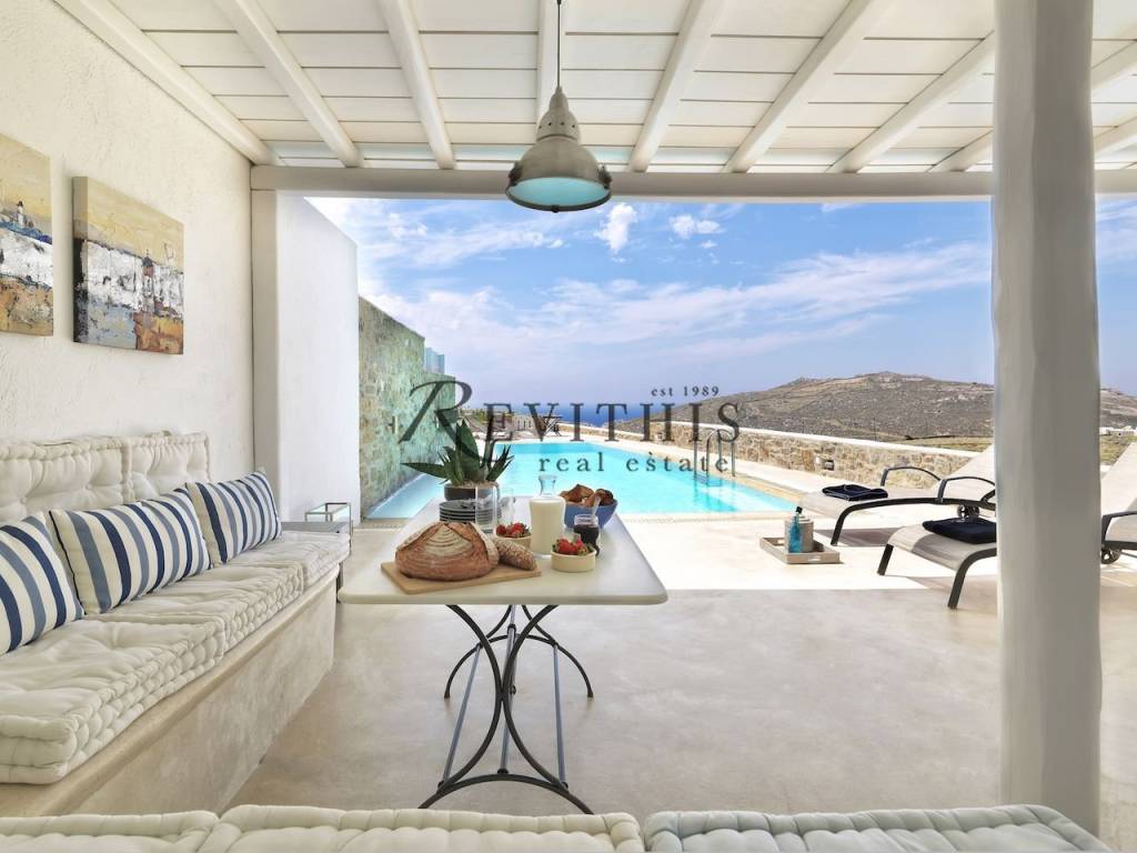 Maisonette For sale in Mykonos - Kalafati. The Maisonette is 153 sq.m.. It consists of: 4 bedrooms, 4 bathrooms, 1 kitchens and it also has 2 parkings (2 Open) and it was renovated in 2022. Its heating is Autonomous, the energy certificate is: C. The property's status is: Very good condition, it is suitable for Holiday home, Short term Rentals, Investment, Revenue source, Swimming pool, Energy autonomous, Solar panels. Price: €650.000. Mykonos Real Estate, contact phone: 2289026066, email: info@mykonos-realestate.com, website: https://mykonos-realestate.com