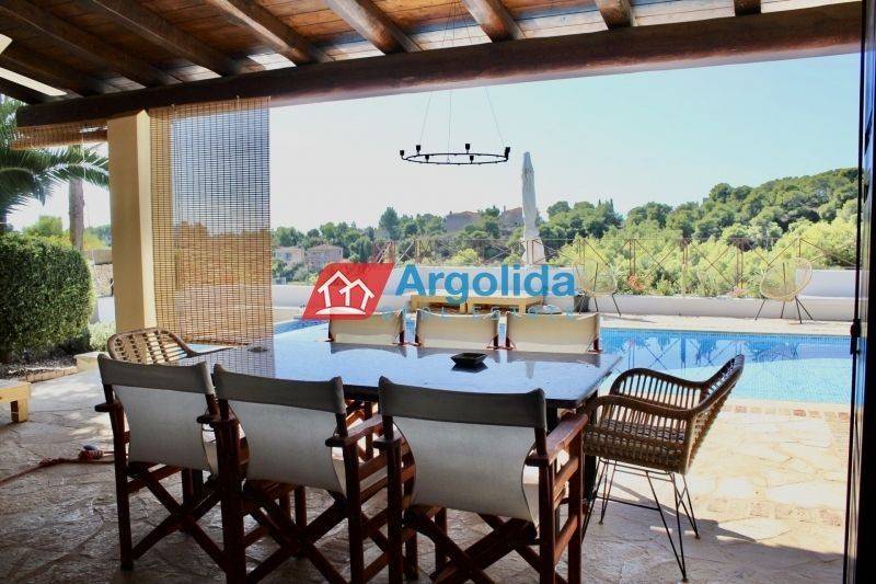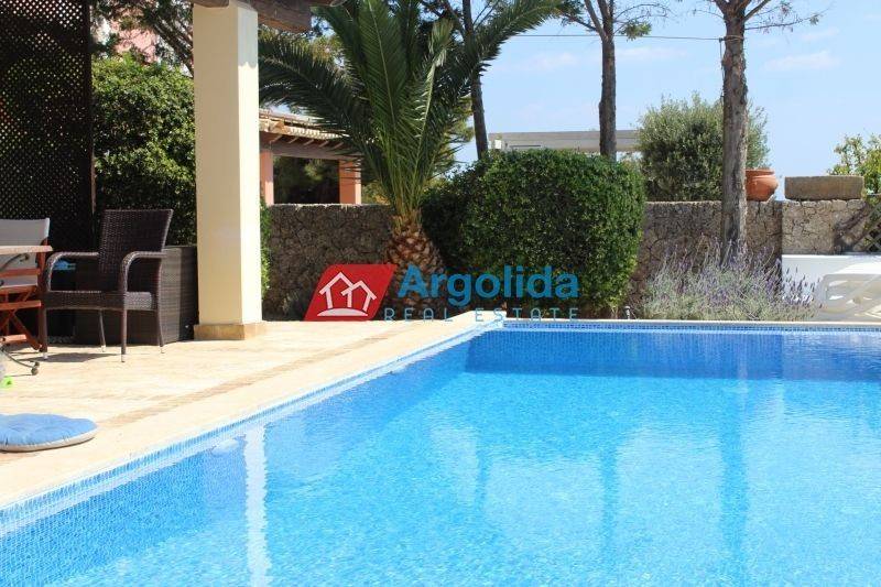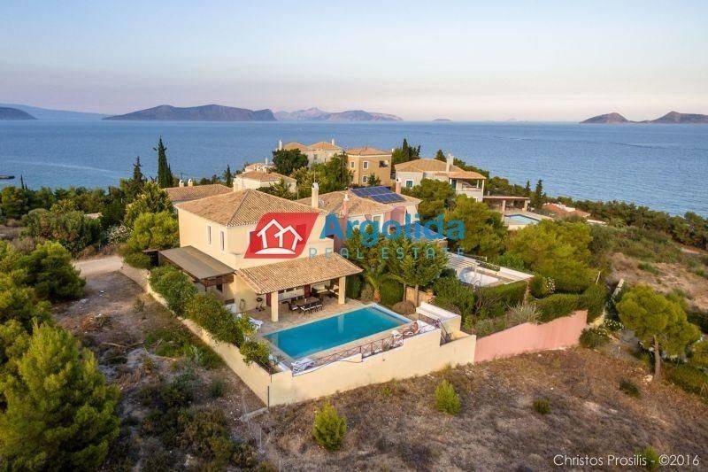 In the heart of the enchanting area of Agios Aimilianos in Porto Heli, this unique seafront villa of 320 sq.m. built on a 485 sq.m. plot and located just 150 meters from the crystal-clear sea offers the ultimate luxury living experience with breathtaking views and direct access to the idyllic Peloponnesian landscape; constructed in 2010 with high standards, the property features four spacious bedrooms, a bright open-plan living room with kitchen, and four modern bathrooms, ensuring both comfort and functionality, while refined details such as wooden finishes, double-glazed windows, fitted wardrobes and high-quality tiles enhance its timeless character; fully equipped with autonomous heating, air conditioning, alarm system, insect screens, electrical appliances, solar water heater and a security door, the villa guarantees year-round comfort, while the outdoor spaces with private swimming pool, BBQ, covered terrace and landscaped garden create the perfect setting for relaxation and social gatherings; a tiled roof, playroom, laundry room, private parking and storage room further increase its practicality, while its privileged location just 5 km from Porto Heli town center and 205 km from the airport make it a truly exceptional opportunity to acquire a luxury holiday home in one of the most sought-after coastal destinations in Greece.