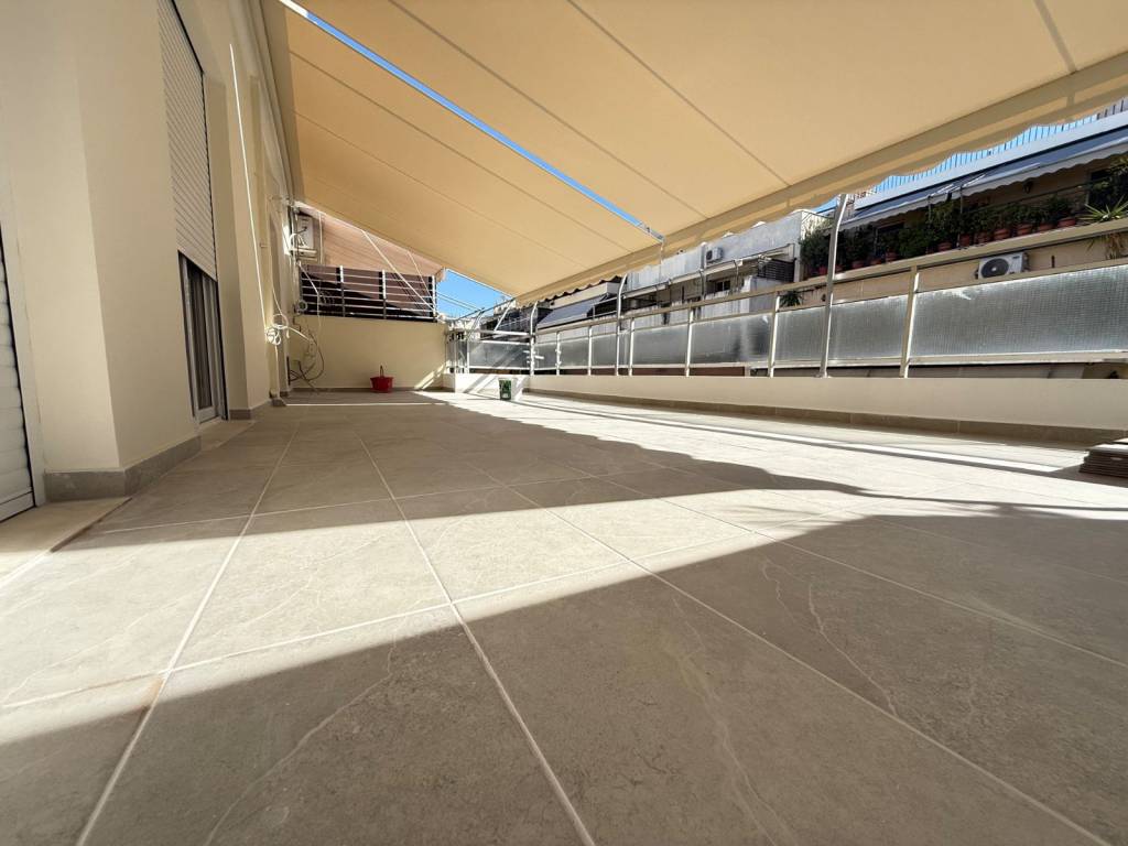 Private ad (No agents fees): 4th floor apartment, 120sqm, fully renovated in 2025 (to be completed February 2025) with three bedrooms (one master), living room, kitchen, WC, bathroom with heated towel rails, storage areas, terrace (40sqm) with new awning and double glazed windows with screens. The property is completely renovated, with new plumbing, electrical (Cat 6 cable for internet and USB sticks) with luxurious materials close to transportation & market. Its heating is autonomous, with natural gas and hot water throughout the year. There are waits for air conditioners and alarm.