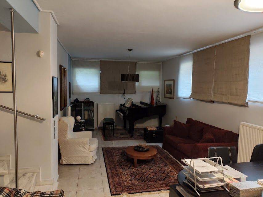 Apartment 161 sq.m. in an apartment building ( Mezzanine 93 sq.m. Semi - bassement 68 sq.m. + 10.35 sq.m. garage) with 100 sq.m. private garden in Gerakas in front of a sqare. Very good layout and bright semi-basement. Mezzanine- Living room, dining room, kitchen, 2 bedrooms, 1 bathroom. Semi-basement - palyroom - office 35 sq.m. 1 bedroom 1 bathroom 2 small storage rooms. Hot in winter cool in summer. Second door to the semi-basement directly from the garage. Parking space for one car and one motorcycle. Price negotiable.