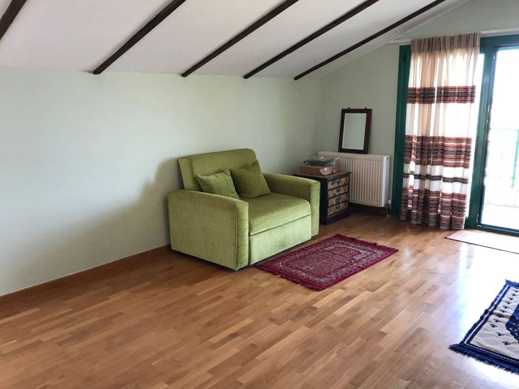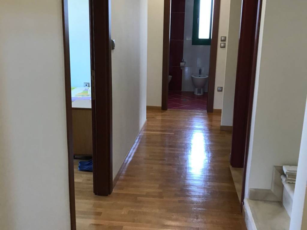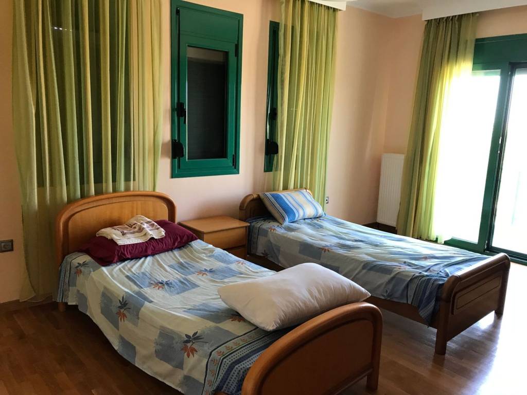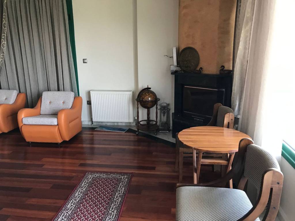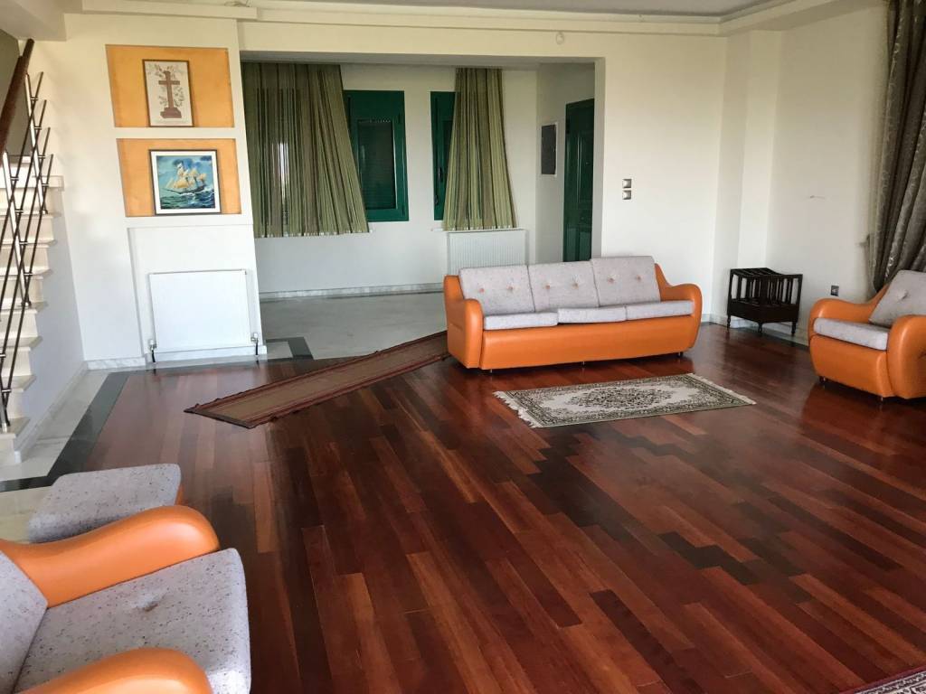 A 375 sq.m., 3 floored, for sale, in a 2,000 sq.m. plot, in Trilofos, Thessaloniki, with view on both Thermaikos Gulf and Olympus mountain. It has: 6 bedrooms, 3 living rooms, 3 kitchens, 4 bathrooms, storage rooms, 2 indoor parking positions, 2 fireplaces, autonomous oil heating system, A/C, indoor elevator, alarm system, yard formation with trees and vines, fenced yard with electrical door and rain water tank (20 cc.). Price: € 420,000.