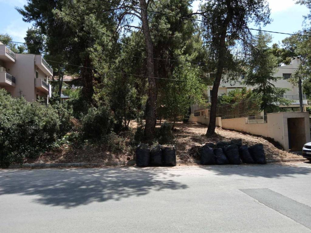 The plot's frontage on the road is 20m and its depth is 40m. The orientation is North-South. The road is North. The plot is uphill with a slope of approximately 10%. The road is wide and the surrounding area has very quality buildings. There are schools at a distance of approximately 1 kilometer. The plot has 8 pine trees.