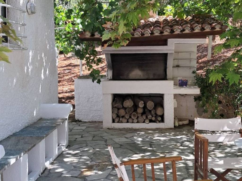 For Sale: Unique, fully organized high-aesthetic farm-plot in Theologos, Fthiotida, just one hour from the northern suburbs of Athens. Covering an area of 7 stremmas in an amphitheatrical position, it is located in front of a pine forest, overlooking the bay of Theologos. The residence, built in 1983 with highly efficient thermal insulation on the roof and exterior walls, has been excellently maintained and offers all modern comforts for both a holiday home and permanent residence. It includes 3 large bedrooms, 2 bright bathrooms, a spacious living room integrated with a dining area and kitchen, as well as an independent guesthouse with its own bathroom—all on the same level. The total living space is 158 sq.m., with additional auxiliary spaces of 100 sq.m. The main house is surrounded by covered verandas totaling 100 sq.m. The construction is earthquake-resistant, meeting the strictest standards. Below the residence, at garden level, there is a 28 sq.m. storage area with a covered garage space, plus an additional open parking space outside the storage area. The farm is supplied with water from the municipal network and features a 20 sq.m. water tank with a pumping station. The property cultivates 100 olive trees, along with pear, peach, and fig trees, as well as a vegetable garden that produces a significant yield annually. Surrounding the house is a 1.5-stremma lawned garden. A unique opportunity to escape the fast pace of city life, while still being within a safe distance from it!