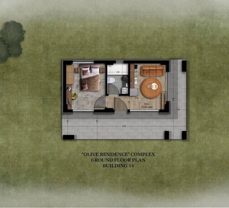 • 2 Houses of 32.60 sq.m, consisting of a living room with kitchen, 1 bedroom, and 1 bathroom.