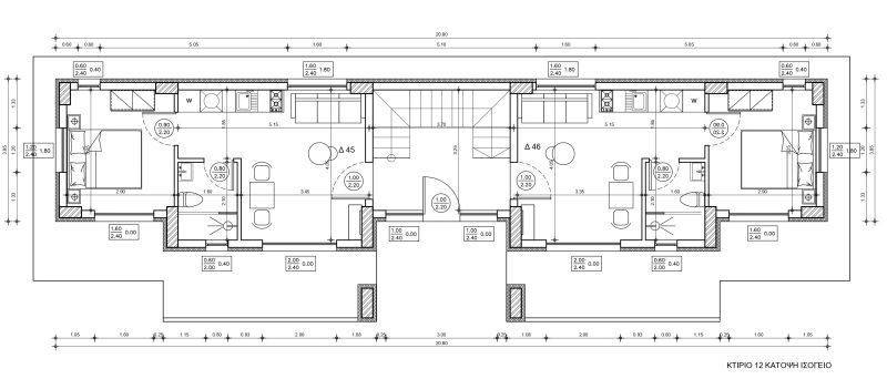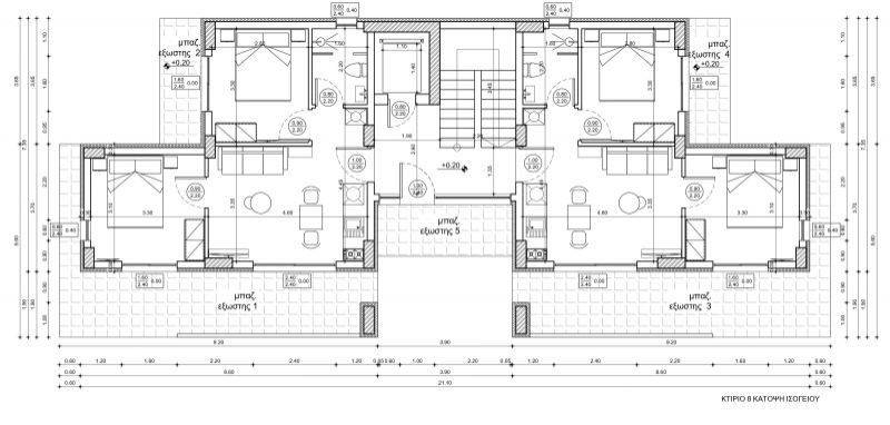 • 12 Ground floor apartments from 36.95 sq.m to 37.52 sq.m, consisting of a living room with kitchen, 1 bedroom, and 1 bathroom.