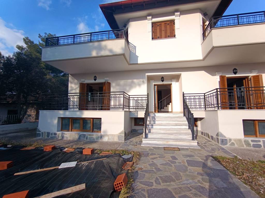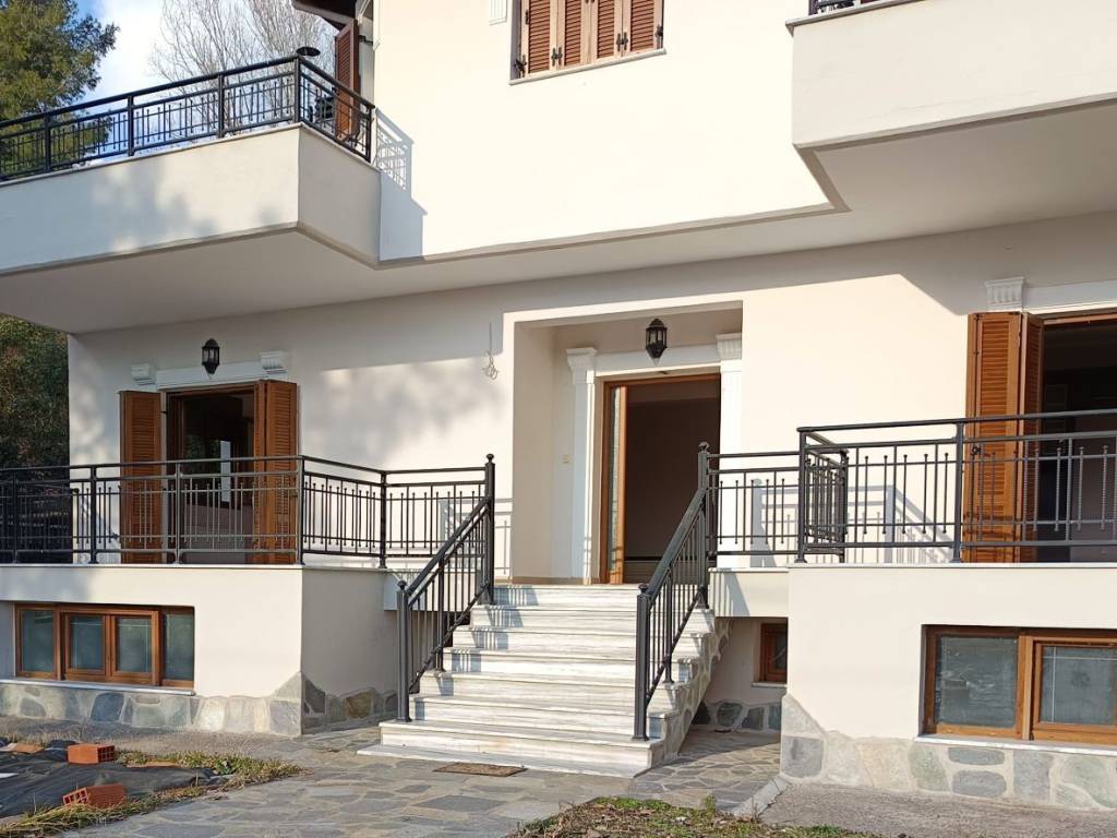 FOR SALE: DETACHED HOUSE IN AGIA ANASTASIA This impressive 315 sq.m. detached house is located in the area of Agia Anastasia in Anthemountas. The property, built in 2012, spans three levels and features four bedrooms (all with built-in wardrobes, and one being a master bedroom with a small sitting area/office and bathroom), two full bathrooms, an additional WC, and a large storage room. It has a separate living room with a fireplace and a beautifully designed, well-equipped kitchen, as well as an attractive roof garden. The property is dual-aspect with an east-west orientation, ensuring abundant natural light. The semi-basement level is an independent apartment that can be configured to include 3 bedrooms, a living room with kitchen, and a bathroom. The outdoor areas include balconies totaling 50 sq.m., a private garden, and three parking spaces. The plot is fenced and covers a total area of 615 sq.m., with an additional 90 sq.m. storage space. The house features modern amenities including air conditioning, alarm system, window screens, security door, and double-glazed windows. The heating is autonomous with oil, and the property has an energy efficiency rating of C. Access is via asphalt road, and the location offers beautiful views, while the entrance gate operates by remote control. The property is situated in a very good and quiet location and is suitable for various uses, including vacation home, investment, medical office, or tourist rental. Call now to arrange a viewing! RK Real Estate
