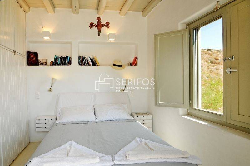 Seaside maisonette of 110 sq.m. in a residential complex in the area of Tsilipaki. The house extends on two levels with independent entrance on both levels. The first level includes a spacious living room-kitchen, a bedroom and a bathroom. The second level includes two bedrooms and a bathroom. All levels have terraces with unobstructed views of the Aegean Sea, Livadi and Chora. On the first level there is a quite spacious veranda where there is a swimming pool with endless views. The house also has a parking space and a water tank with a capacity of 30 cubic metres . Ideal for holiday home and for tourist use.