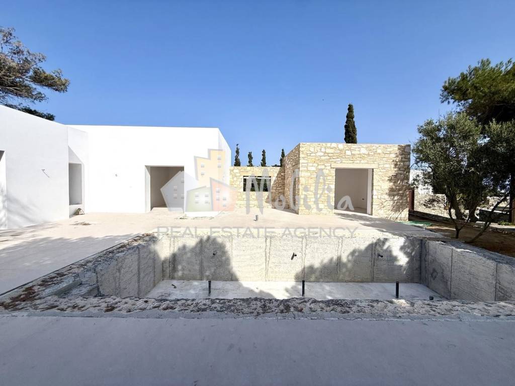 Located in the heart of Dryos, this stunning independent villa is being built on a 1,000 sq.m. plot, with a total living area of 200 sq.m. The residence consists of two separate buildings, surrounded by a beautiful garden with a courtyard and a swimming pool. The main house features a spacious living room, an open-plan kitchen, and a dining area, all offering views of the garden and pool. On the same level, there are two large bedrooms, each with its own en-suite bathroom. An internal staircase leads to the lower level, which includes a gym or a bedroom, laundry room, and a hammam. The fourth bedroom, also with a private bathroom, serves as a guesthouse and is located in a separate building next to the main house. It is connected by an elegant pergola and opens directly to the courtyard, which features a seating area and the swimming pool. The villa is scheduled for completion during the spring of 2026 Don’t miss the opportunity to visit one of the few newly built luxury residences within the settlement, just a short distance from the sea. Mobilia Real Estate, contact phone: 2107563200, 2107563202, email: info@mobilia.gr, website: www.mobilia.gr