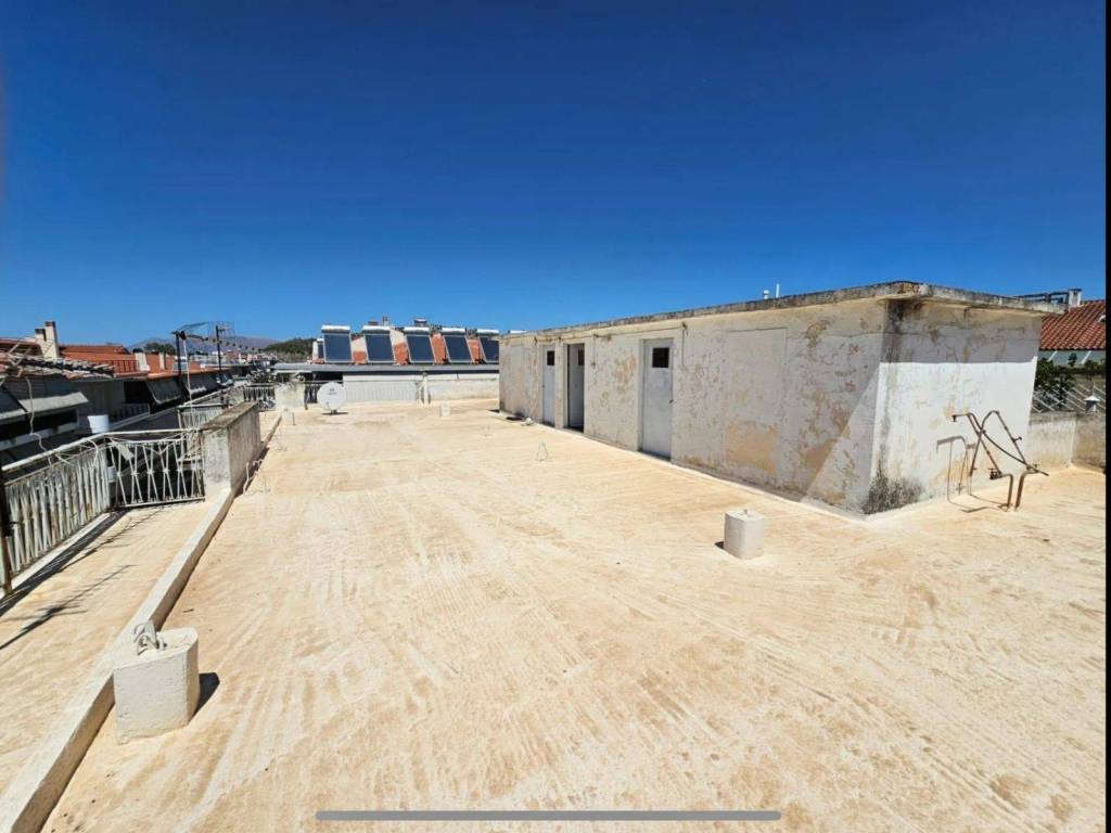 Roof terrace of 170 sq.m. on a three-storey building, with full exclusive use, in the city of Nafplio, offering unobstructed views, plus a 27 sq.m. structure. It includes the right to build upward on the plot (“air rights”) and 240/1000 share of co-ownership, exempt from common charges. The 27 sq.m. structure consists of 2 rooms with a kitchen, and a W.C., requiring complete renovation.With the possibility of constructing a pergola up to 50 sq.m The location shown on the map is indicative.