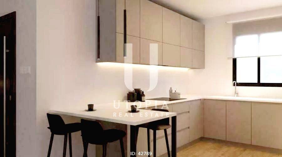 Pefki - Apartment 112sqm bedrooms 3, levels 1, 1st, under construction, year built 2024, energy class A+, living room, kitchen, 2 bathrooms, heating type: individual unit (natural gas), air condition, parking covered, quiet, dual aspect apartment, luminous, unobstructed view view, frontage, storage space, solar heater, external thermal insulation, fireplace, balconies, elevator, aluminum frames, double glazed windows, door screen, wood & tile floors, three phase electricity, secure door, alarm, video doorbell, luxurious, ev charger, pets allowed, residential zone, south-western orientation, close to metro/train (up to 500m).