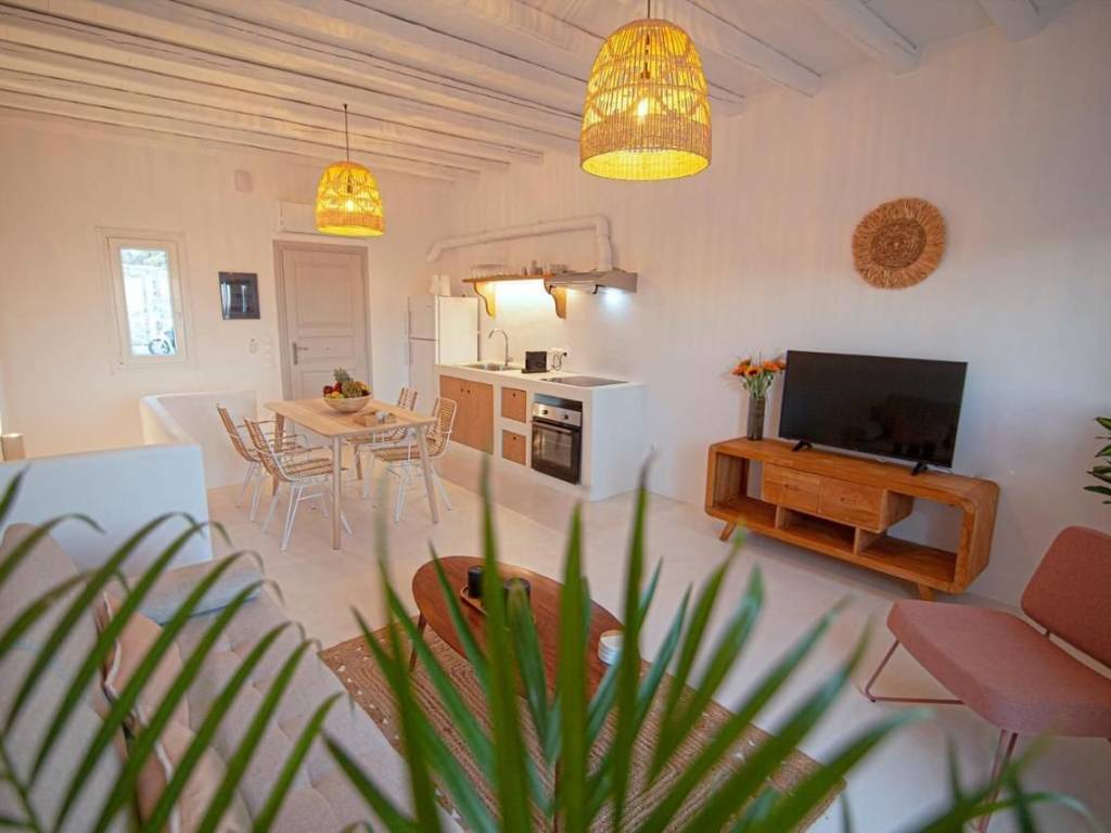 A great investment opportunity in Mykonos , not to be missed ! A cozy 2 bedroom house , part of a complex of 4 houses in the area of Kalafati awaits for you . The house was built in 2016 , and it offers two spacious bedrooms , 2 bathrooms & kitchen - living room space . It also features a private outdoor pool & lounge area with breathtaking sea view ! A rare opportumity to invest in a winner property & benefit from the high volume of summer holiday rentals , while at the same time you can use the property for your own joy !