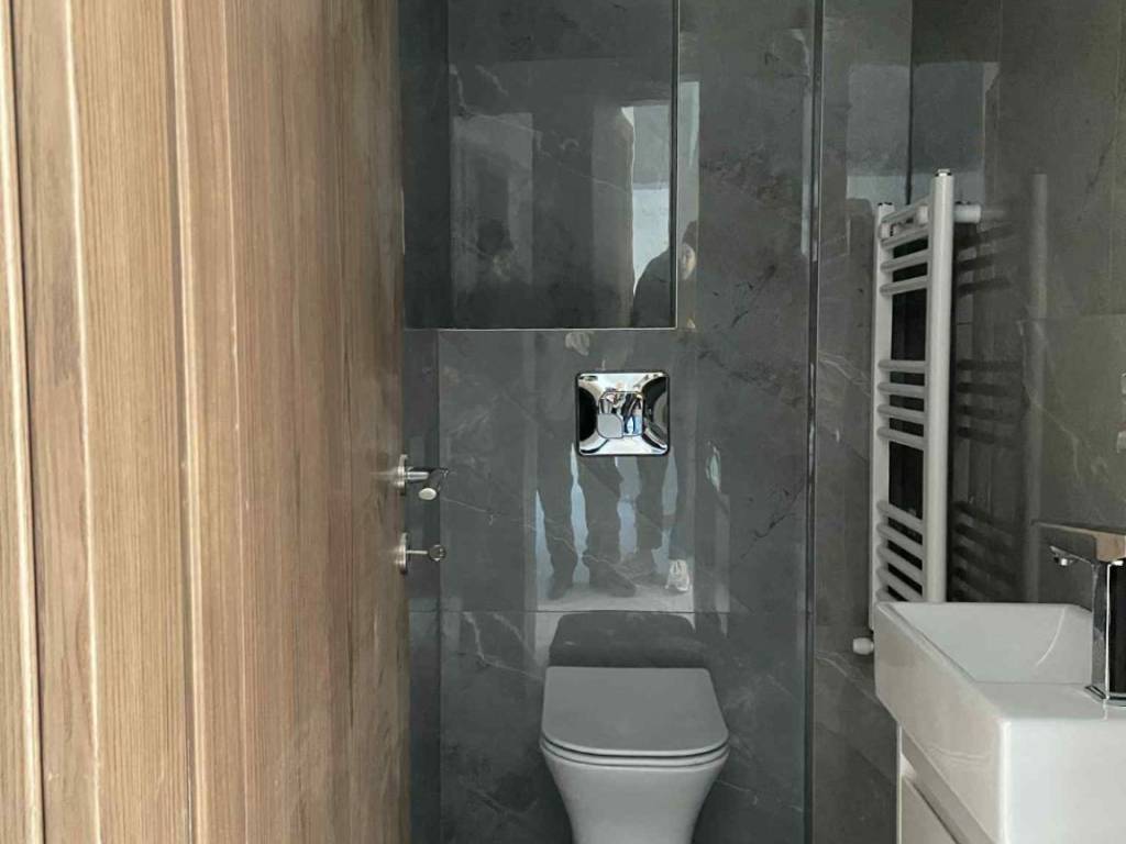 1st floor apartment of 100 sq m for sale. It consists of an open-plan living room-kitchen, three bedrooms, a bathroom, and a WC, a large storage room in the basement and a double parking space. The property has a thermal facade, a solar water heater, and autonomous gas. This is a luxurious construction, as the best materials have been used. It is airy and very bright. The property is located in an excellent location near Lidl, with a wonderful unobstructed view of a park and direct access to the ring road.
