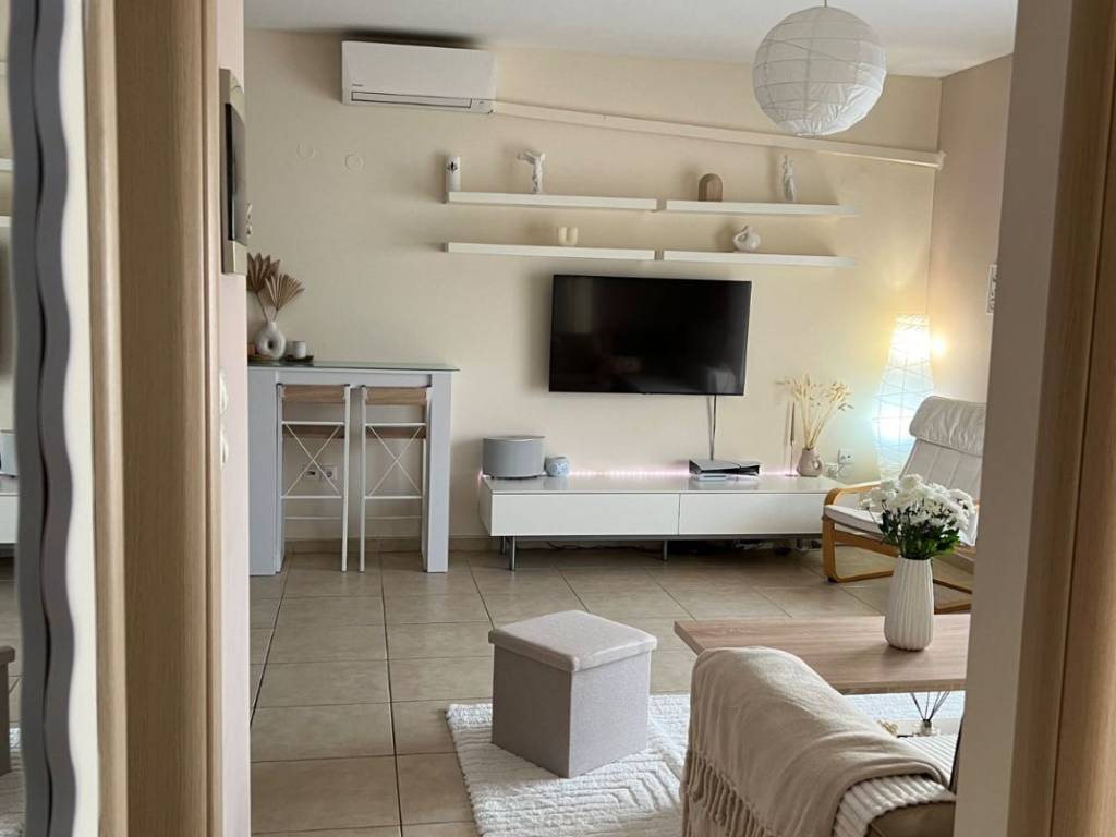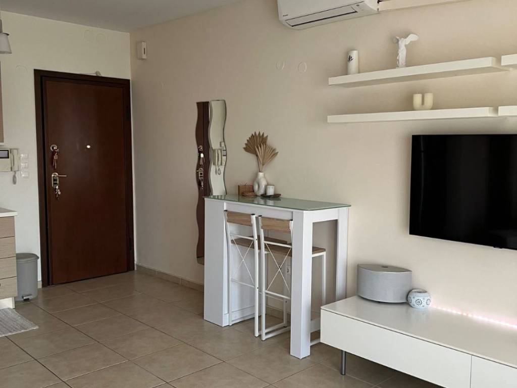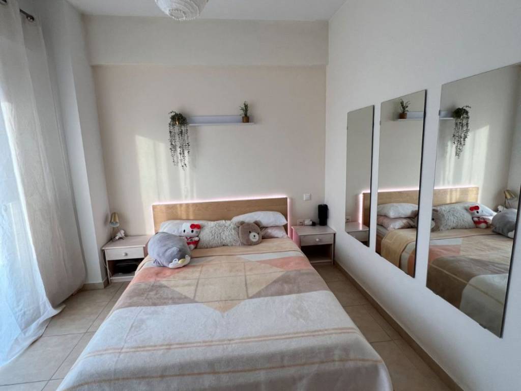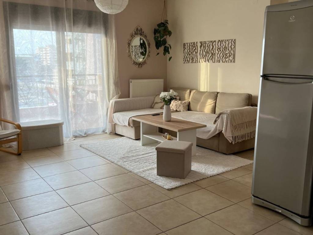 Menemeni, Center: 2nd floor apartment for sale, 70 sq.m. (60 sq.m. net), built in 2005, fully furnished and equipped with all the necessary electrical appliances. The apartment is located right next to the Grand Palace with sea view and endless open space. The property is suitable for investment , as it is leased until the end of 2027.