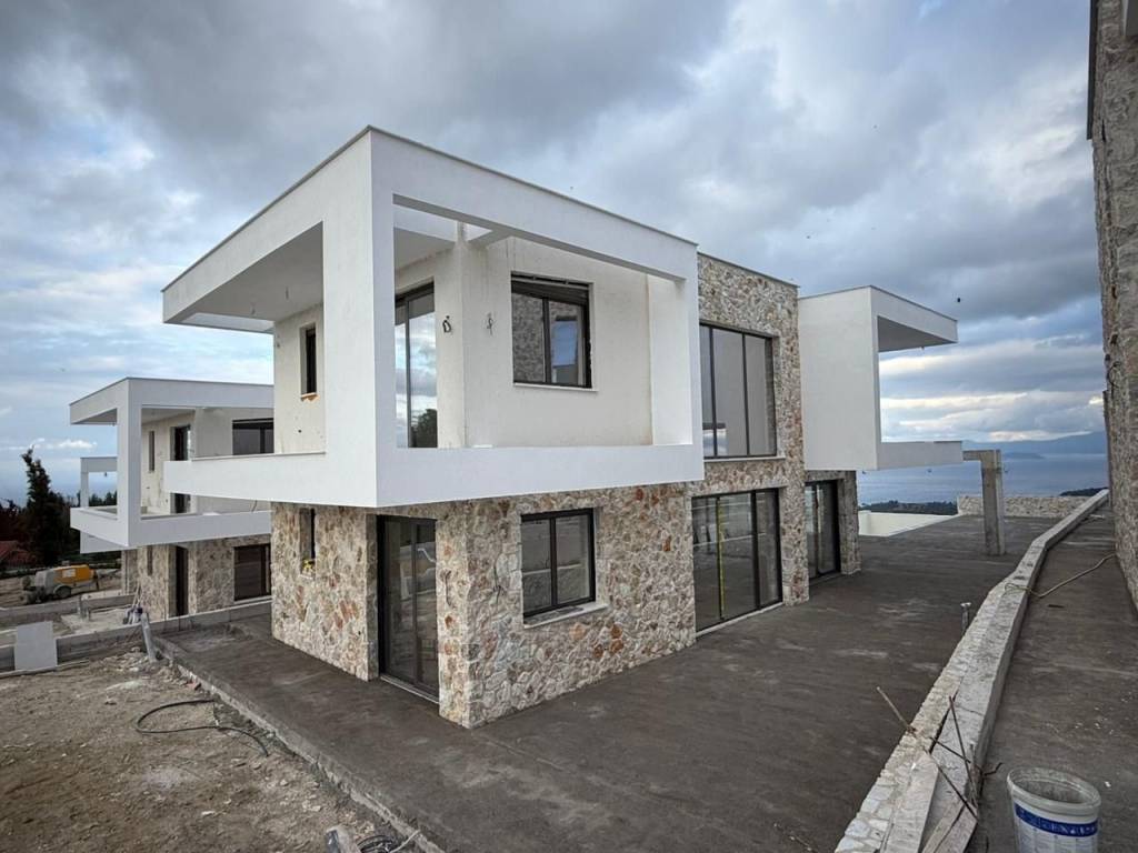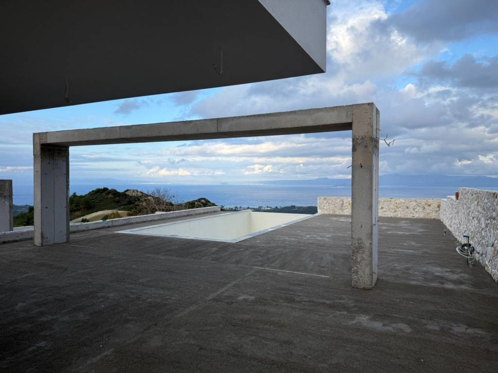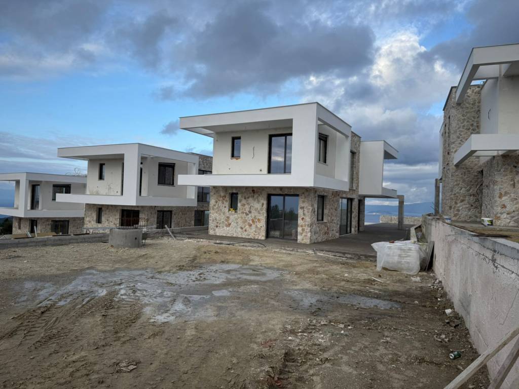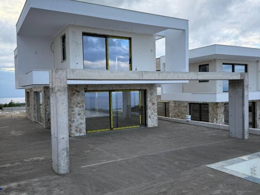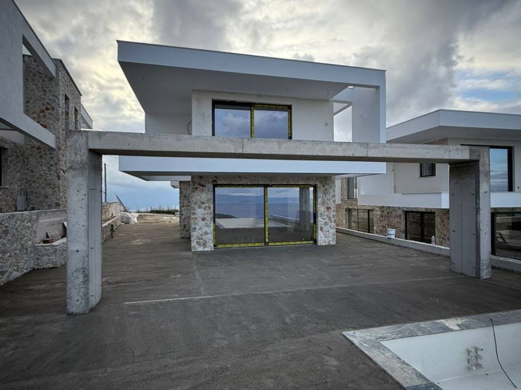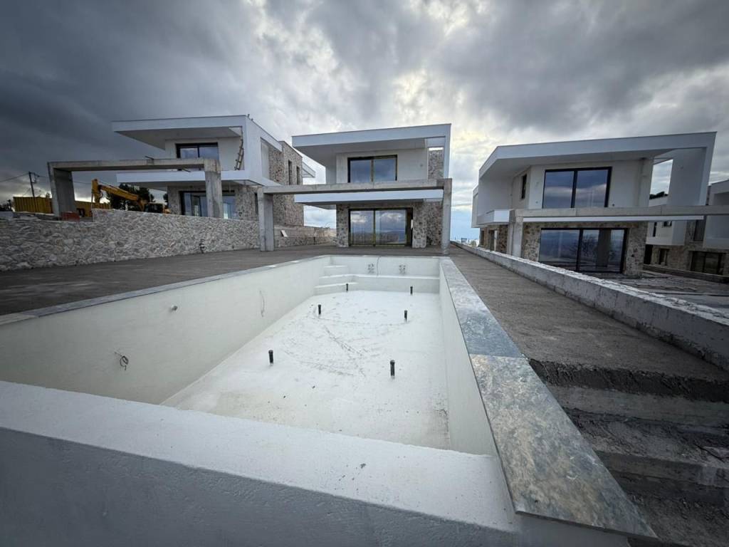 There are 4 new Halkidiki villas for sale with swimming pools and great views. On the ground floor there is a living room combined with a sitting room and a kitchen with build in furniture. Also, we have a bedroom and a bathroom with a shower and a toilet. On the first floor there are 2 bedrooms and a bathroom with a shower and a toilet. High quality of construction and materials Fully furnished Kassandra properties Anti mosquito nets Electric appliances of the kitchen Air conditioning in all spaces (split system) Barbecue spot near the pool Garden with lawn and automated watering system 2 parking places Private swimming pool (36m2) Extra water tanks and pump for the gardens, pools and the villas Quite place Nice 360° views to the sea and the surrounding mountains Completion of the complex – September 2025