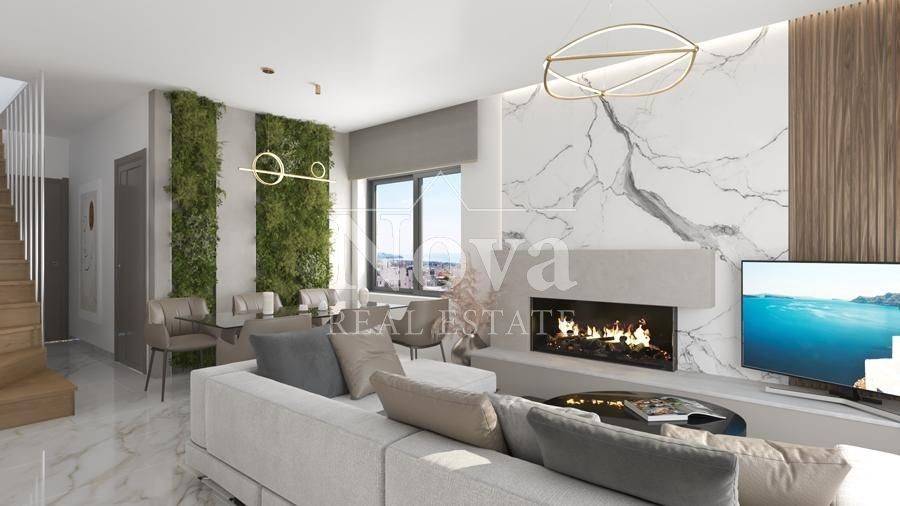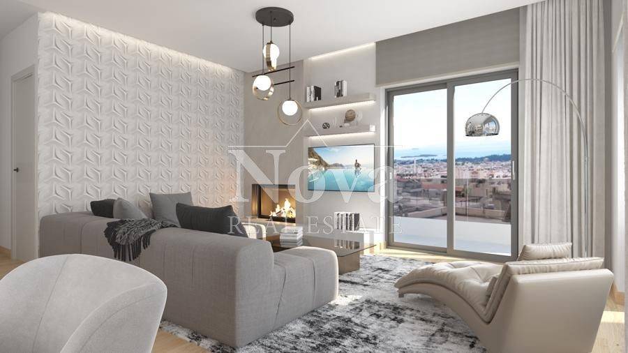 Glyfada, Ano Glyfada - Maisonette 141sqm bedrooms 3, master bedrooms 3, levels 2, 6th (112sqm) - 7th (50sqm), under construction, year built 2022, energy class B, living room, kitchen, 3 bathrooms, wc, heating type: autonomous, parking, quiet, exposure, luminous, sea view, facade, painted, storage space, solar heater, external thermal insulation, fire place, balconies, large balconies, elevator, terrace 38sqm, aluminum frames, double glaze windows, door screen, secure door, alarm, internal stairs, barbeque.