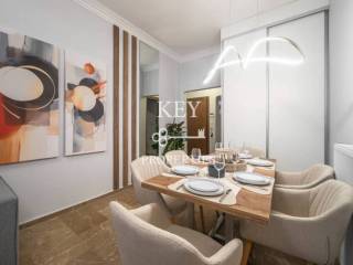 For sale luxuriously renovated apartment, 95 sq.m. and fully furnished, on the 2nd floor with elevator. It consists of three spacious bedrooms, a bright open plan kitchen with living room and a bathroom. It has electrical appliances, air conditioning and individual gas heating. In a unique location in the heart of the city, next to bus and metro stops, school, universities and the market.