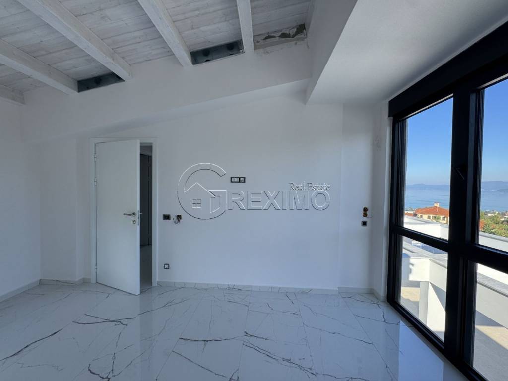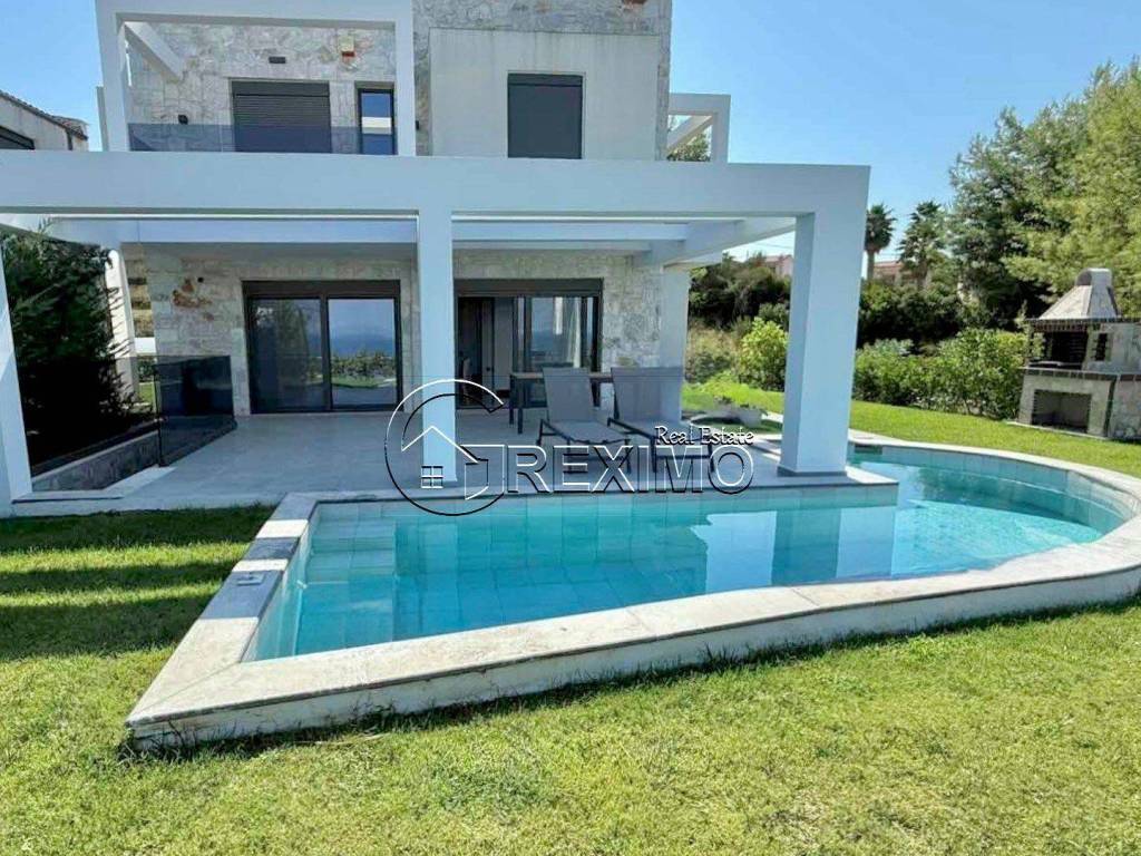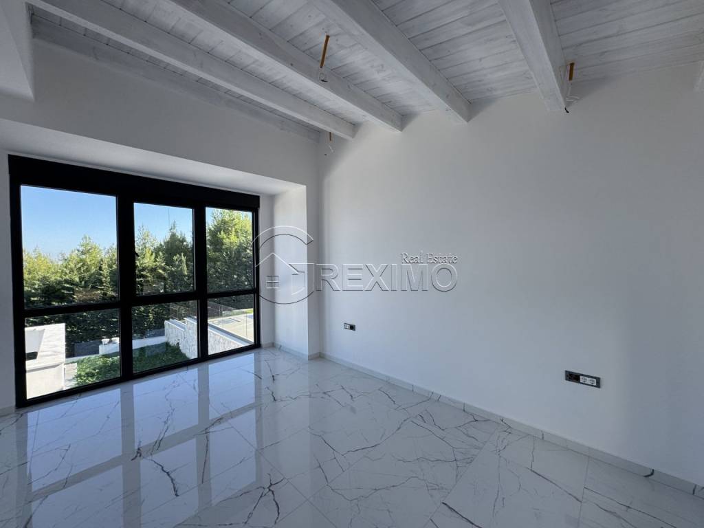 Newly built luxury villa with pool in Hanioti, Halkidiki. Modern Mediterranean-style architecture, spacious living areas and incredible views of the Aegean Sea, offers an ideal balance between luxury and comfort. Main features: Area : 220 sq m located on a plot of land with an area of 600 sq m. 3 Levels : 5 bedrooms, 3 bathrooms and an open living room with a designer kitchen. Exterior : Stone facade, monolithic pergolas, beautifully landscaped gardens. Interior : Terracotta floors, large panoramic windows, modern furniture and SMART Home installation. Additional amenities : Private pool, veranda, parking space, independent heating system, heat pump, alarm system. Advantages: Location : The quiet and peaceful area in Hanioti is ideal for relaxation, while being close to beautiful beaches and restaurants. Views : Panoramic views of the Aegean Sea. Energy efficiency : A heat pump, solar water heater and triple glazing ensure comfort and low energy costs. Thanks to the modern systems and sophisticated design, the villa is suitable for personal use or as a rental investment. If you are interested in purchasing a property in Greece , you can contact us for further information. Phone: +30 694 527 5975 Email: office@greximo.com