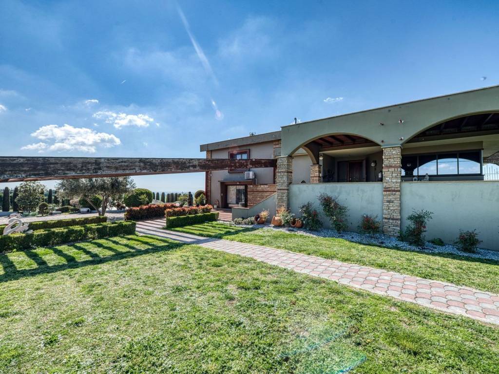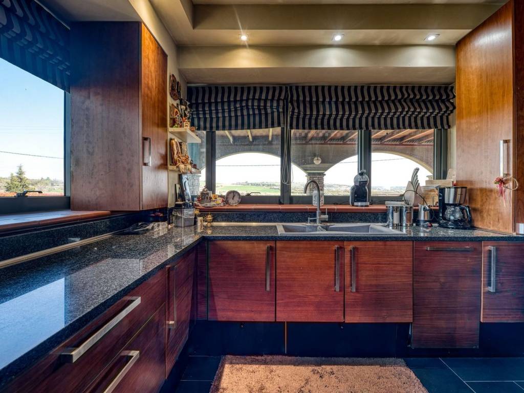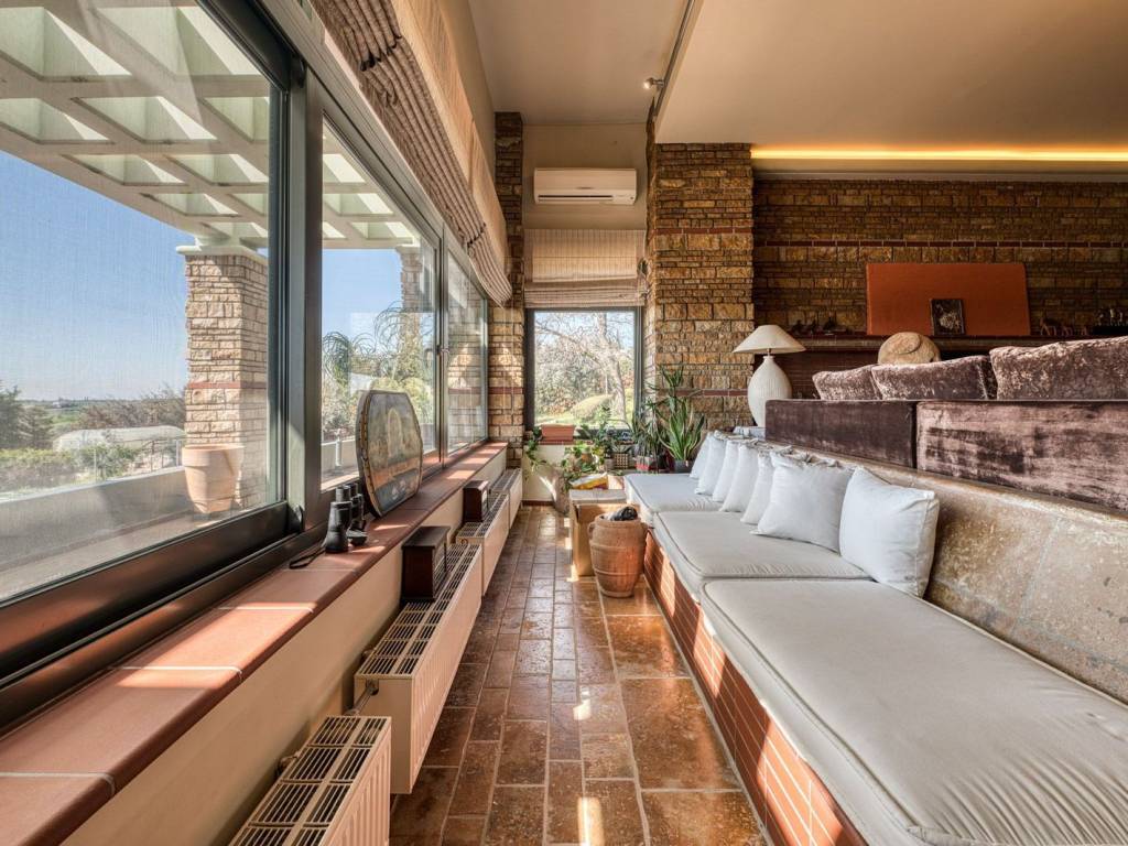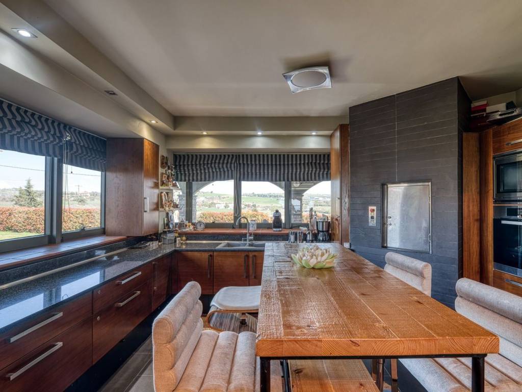 In Kardia of Thessaloniki a beautiful, luxury villa of high aesthetics and architecture, which stands out in the area, is for sale, on a plot of 7.000 sqm. It is a unique detached villa of excellent construction of 2006, built with the highest quality materials and with the most modern way. Due to its very privileged location and easy access to Thessaloniki and Chalkidiki, we could well describe it as a small paradise in the area of Thessaloniki, as the owner can enjoy absolute tranquility while at the same time has the opportunity to be very close to all areas of Thessaloniki. Exterior of the villa (Garden - Swimming Pool - Pergola - Barbeque - Basketball Court) The residence is surrounded by a huge green private garden of 2.000 sqm., in which we find well-tended plants and trees. The garden has an automatic watering system throughout, while at the front of the house we find the very impressive 55 sqm. swimming pool with internal lighting. Near the pool there is a beautiful pergola, while alongside the garden there is a specially designed covered area with a barbeque that can also be characterized as a studio. Parking - Fencing: In the courtyard there is an autonomous parking area for vehicles with a capacity of 4 spaces, which can be accessed through the automatically opening central door-entrance. There is also an underground garage for one parking space. The house also has external fencing with a wall. The house is of luxurious construction, with well-kept facades which are lined on one side with decorative bricks. On each floor there are large spacious balconies with views and openness. All windows are equipped with double glazed aluminium frames with screens and blinds. Interior of the house: On the 1st level of the house, as we enter through the security armored door, we are first led to a very beautiful hall and then we find a large imposing salon-dining room with fireplace and kitchen, distinguished by luxury and high taste. The whole floor is surrounded by large bright windows with French doors leading to the terrace, garden and pool. As we continue, we come across the impressive kitchen which is fully equipped with modern built-in appliances. On the ground floor level of the house we are led up from a beautiful staircase to an open plan area consisting of a modern saloon kitchen with dining area. There is a bedroom and a living room that inspires warmth and tranquility. Continuing on, we discover the fitness and wellness area that the property fully features. The room decoration is of a high standard and all floors are of high quality. There are nice windows in the space, and we have direct access to the garden and the pool. Therefore, the ground floor level of the house could very well be a self-contained apartment. In addition on this level there are two spacious surface storage rooms. On the intermediate floor - level of the house we are led by the same staircase to a very beautiful hallway, which leads to a huge master bedroom and an impressive bathroom with Jacuzzi and wc. The flooring is of high quality and all rooms and the bathroom have large bright windows with French doors. After the beautiful bedroom, we are led to three spacious bedrooms with access to the garden and pool via beautiful architectural balconies. The heart of Thessaloniki is located south of Thessaloniki, and is an amphitheatrical suburb with an excellent sea view. Very close to the airport and with direct access to Halkidiki and Thessaloniki, as it is located right on the central artery of Moudania-Thessaloniki. It is also near Trilofos, Plagiari, and Scholari. It is an excellent choice for residents who love peace and nature, as it is situated in a very beautiful environment. It has its own small market and public transport by OASTH. There are properties of various kinds: from plots, apartments, maisonettes, to unique detached houses.