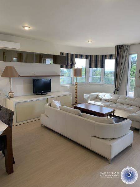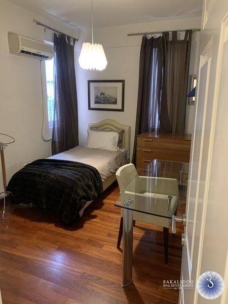 Glyfada, Golf, luxurious 2nd floor apartment, 145 sq m., with a unique and unobstructed view of the Golf Park, renovated - furnished and equipped, with a large terrace, in the most beautiful neighborhood of Glyfada, just 15` walk from the square. It has a comfortable living room area with fireplace, 3 bedrooms, 2 bathrooms, modern style, equipped kitchen with all the electrical appliances, autonomous heating - oil, solar water heater, air conditioning in all areas, 1 underground parking space and storage room. It is located in the most privileged area of Glyfada, a very nice and very quiet area, within walking distance of the market, public transport. The price in the ad is for an annual contract. It is also available for short-term rental with a different rent price.