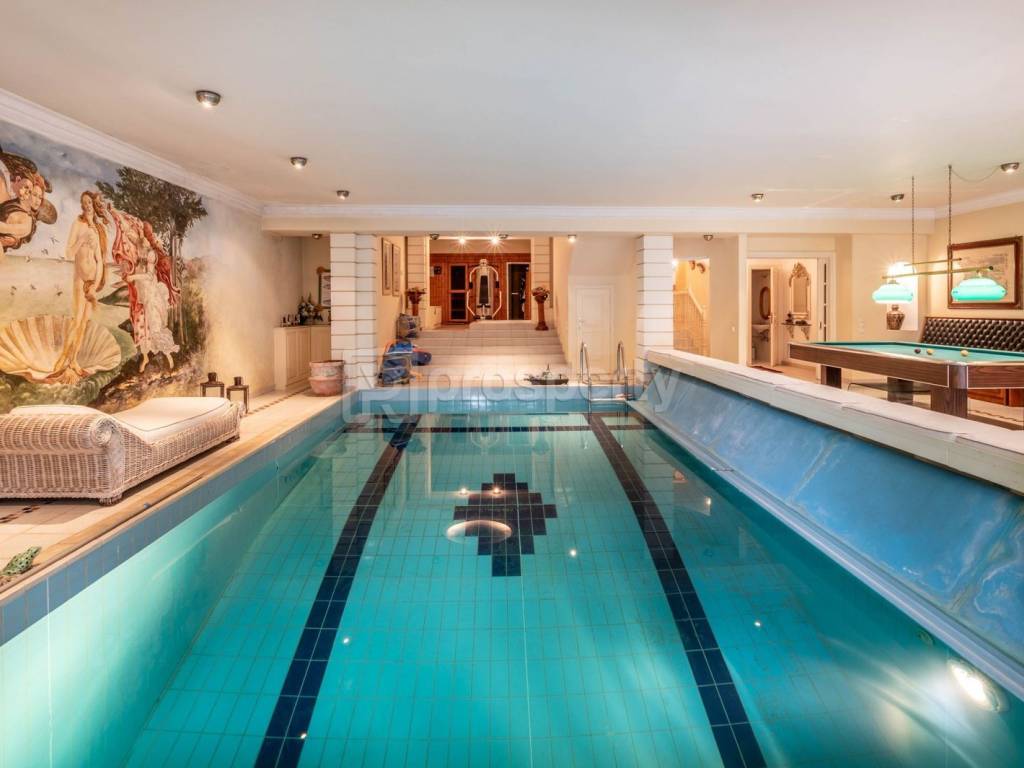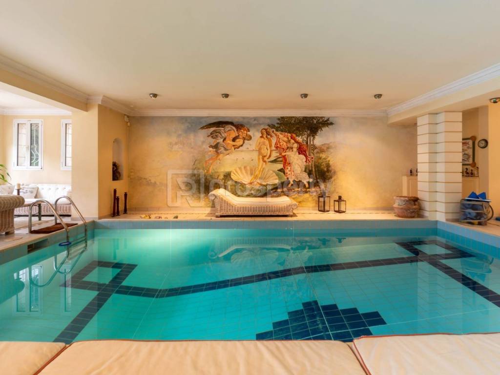 Dionysos,near Kairi , a luxurious detached property of 750 sq.m ,in a plot of 810 sq.m . This unique property ,(built in 1991) offers an indoor heated swimming pool(32 sq.m) and extends in 3 main levels. The ground floor consists of a pool area comprising a sauna, jacuzzi, gym, playroom with a fireplace, guest’s bedroom with a bathroom, storage places, laundry room and a maid’s room with its own bathroom. The main entrance leads to a split level ample reception room area, with a unique marble fireplace , the dining room area, wc and an impressive kitchen with a secondary dining area.The kitchen includes a wood oven and a fireplace. On the 1st floor, there are 4 bedrooms with en suite bathrooms and a fireplace in the primary suite. All bedrooms look like lofts . This level also has a small TV area with a fireplace. All levels are connected by an elevator. The property has a garage for 3 cars. https://marketplace.theprosperty.com/listings/10713 ☎️ 210 6812500.