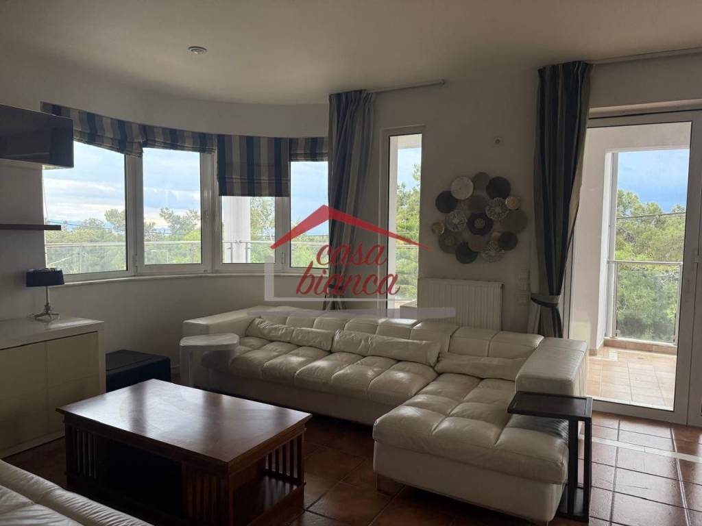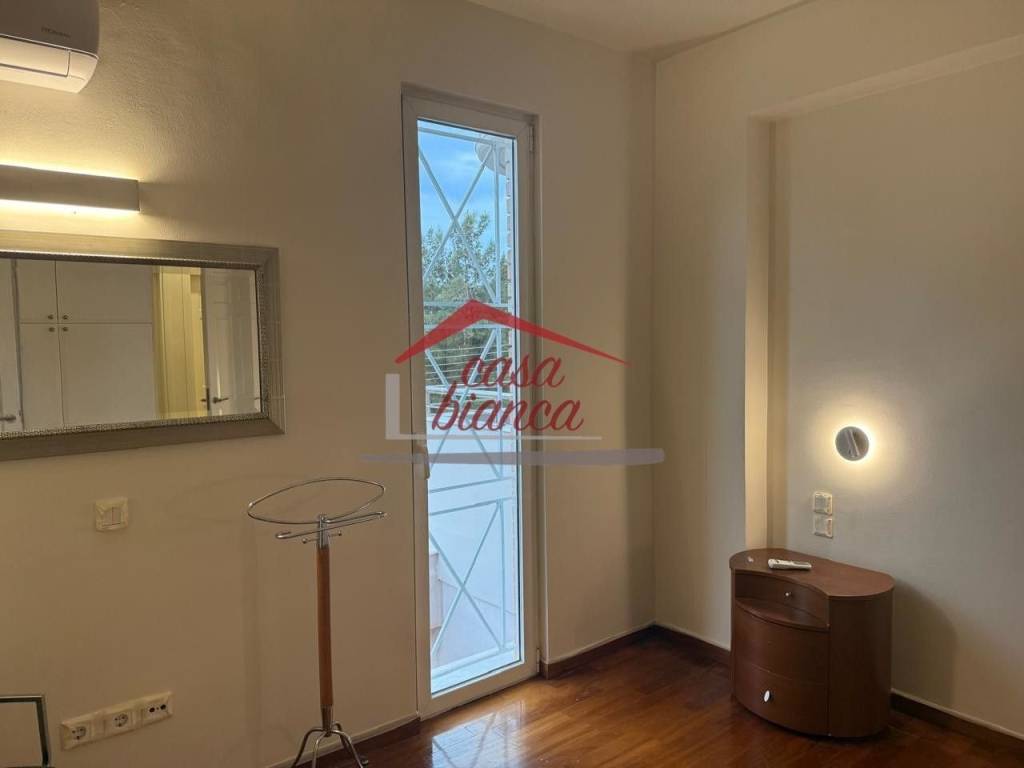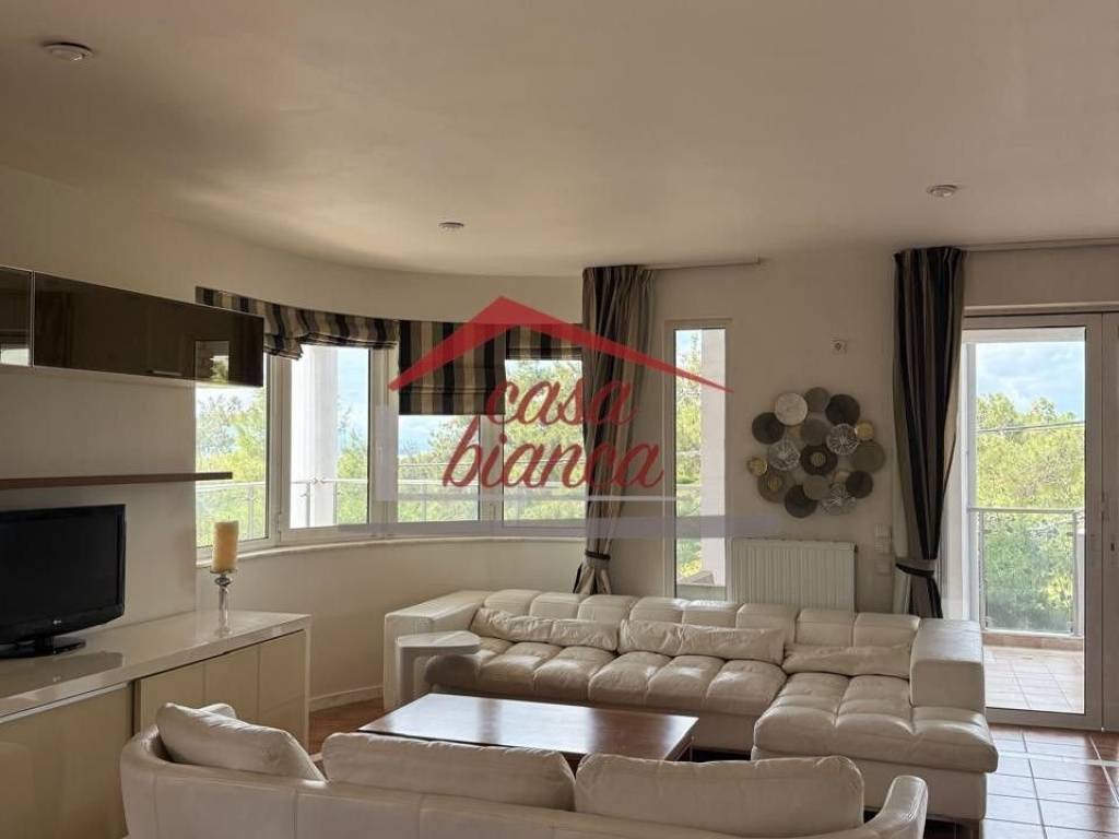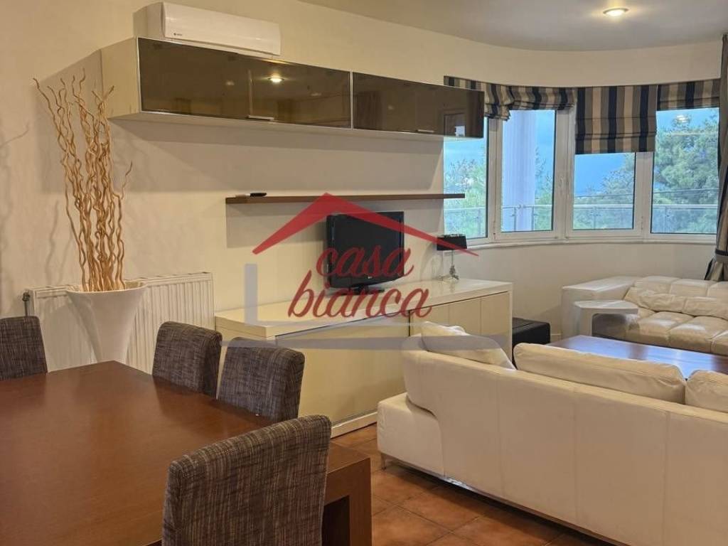 Available in the beautiful and quiet neighborhood of Golf, a luxurious second-floor apartment of 135 sq.m. The apartment was renovated in 2025 and offers a unique and unobstructed view. It is fully furnished and equipped with high-quality sanitary ware and a modern kitchen with built-in electrical appliances. It consists of a living room with a fireplace, three bedrooms, and two bathrooms, and also features a large terrace. The property has autonomous oil heating, a solar water heater, and air conditioning in all areas. It also includes one parking space and a storage room. It is ideally located just 15 minutes on foot from the central square, close to the market and public transport, making it ideal for both long-term and short-term rental with a minimum stay of one to twelve months. Casa Bianca real-estate Contact information: www.mycasabianca.com Tel: 6949082826 (WhatsApp / Viber) 2109574700-01 price 3.200€ (negotiable), code 4392