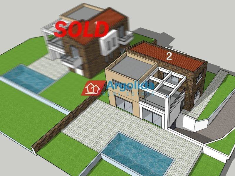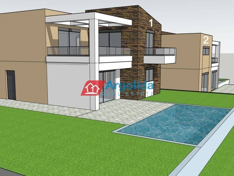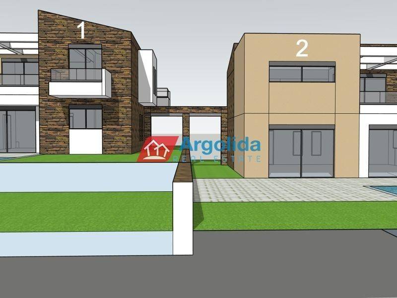 House 2 - In the beautiful and peaceful area of Lefkakia, just 5 km from the sea, a 166 sq.m. detached house under construction is available for sale, situated on a plot of approximately 1,000 sq.m., with a selling price of €500,000. This property combines modern aesthetics, functional layout, and high-quality construction, making it an ideal choice for permanent residence or vacation investment. The residence is spread over three levels connected by an internal staircase and offers bright, spacious interiors and flexibility in use. The ground floor 93sq.m features an open-plan living and kitchen area, one bedroom, and one bathroom, while the upper floor 73sq.m includes three (3) additional bedrooms (1 master) and another bathroom, fully meeting the needs of a family. The basement of 90sq.m provides a large garage / storage area. The outdoor area is fully usable and designed for leisure, with a landscaped garden, space for various activities, and a large swimming pool — perfect for relaxing summer moments and a touch of luxury. The construction, scheduled for completion in October 2026, follows modern technical specifications with a strong focus on energy efficiency and comfort: it includes advanced insulation, energy-efficient and soundproof windows, an energy fireplace, air conditioning, solar water heater, and other high-quality features that ensure year-round comfort. The location offers easy access to popular destinations such as Nafplio, Tolo, Plaka Drepano, Vivari, and Kandia, perfectly combining the tranquility of nature with close proximity to beaches, local amenities, and dining options. Contact us for more information or to schedule a viewing of the property.