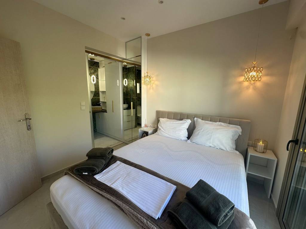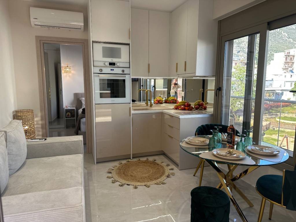 For rent Super Lux newly built apartment of 35sqm in Loutraki, Corinth The price is for the DAY. Available throughout June. It is fully furnished with electrical appliances and furniture. It has a private, covered parking space. Internally it consists of a living room - kitchen (single space), a comfortable separate bedroom, large super luxury bathroom (with shower - hydromassage, wardrobe and mirror - toilet) , two large balconies, one on the left overlooking the center and one on the right overlooking an incredible view of the park and mountain. It is just 100m from the sea. and 40m from the main road of Eleftherios Venizelos in Loutraki. "For any information or to make an appointment, do not hesitate to contact us. AGORA REAL ESTATE Contact Tel: 0030 27440 23939, 0030 6986213818 (WhatsApp & Viber)"