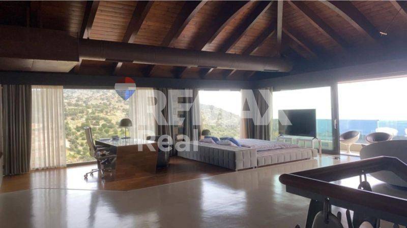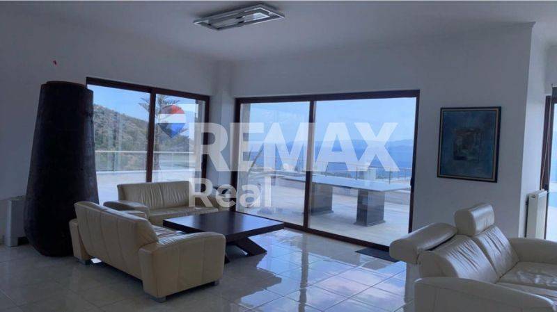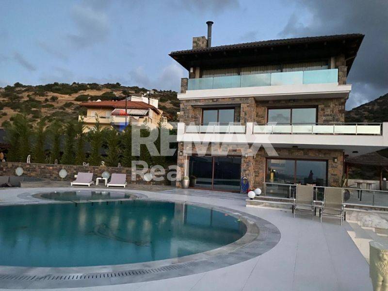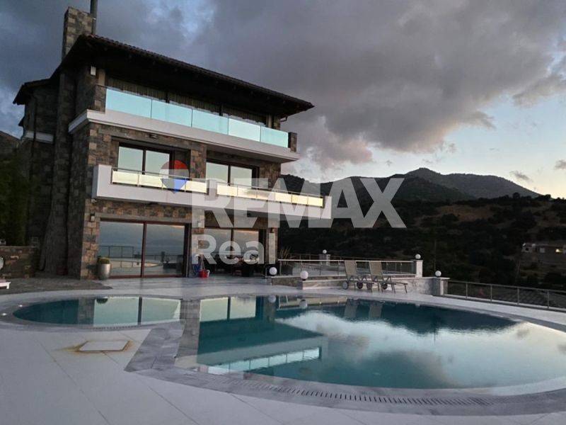 Perched atop a lush green hill in Agios Nikolaos, this newly built, stunning property offers ultimate privacy and breathtaking views over the azure waters of the Cretan Sea.
