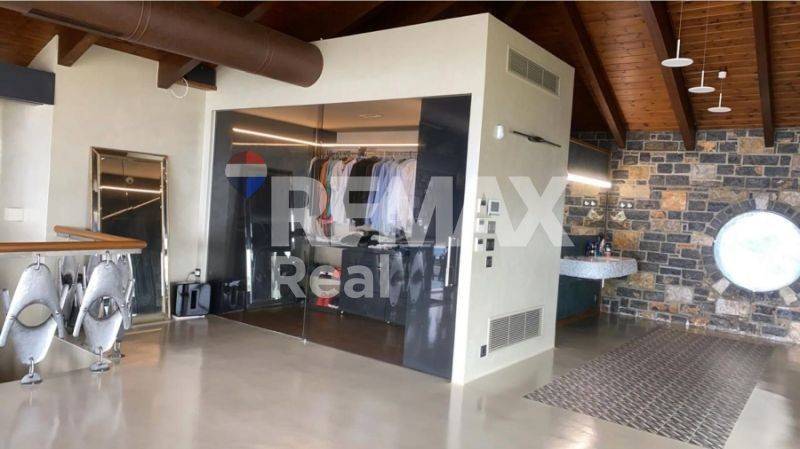 Second Floor – Master Suite: An entire level of 140 sq.m., with high wooden ceilings and luxurious finishes, including a bathroom with jacuzzi and fireplace, smart home features, audio system, full security setup, and total automation.